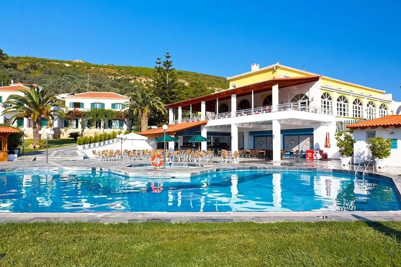 Hotel disponuje 108 izbami, ktoré sú rozdelené medzi hlavnú budovu s dvoma poschodiami a niekoľko prízemných bungalovov situovaných v krásnej záhrade. Výbava hotela zahŕňa vstupnú halu s recepciou, príjemný kútik s TV/sat., hlavnú reštauráciu a bar. Záhrada je vybavená bazénom a terasou na slnenie, kde sú k dispozícii gratis ležadlá a slnečníky. Osušky sú na požiadanie za poplatok a depozit.