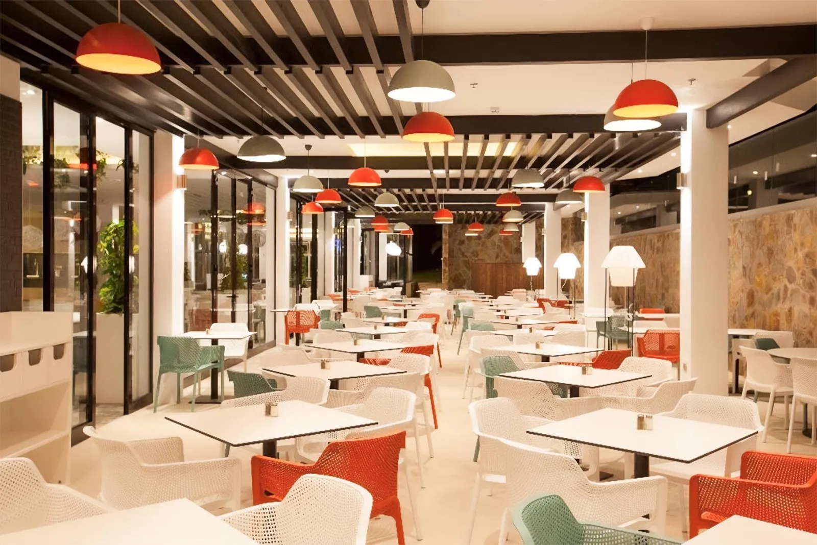 Hostia môžu využiť bufetové raňajky, obedy a večere, pričom snack bar ponúka občerstvenie a lahôdky počas celého dňa. All inclusive program zahŕňa miestne alkoholické a nealkoholické nápoje, pričom verzia All inclusive premium ponúka širší výber značkových nápojov.
