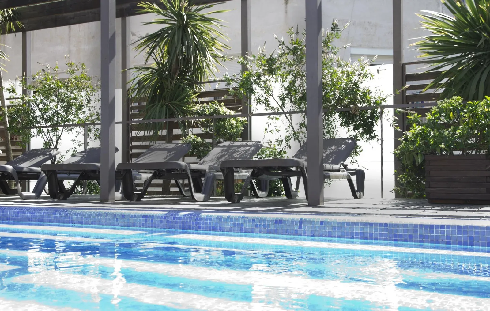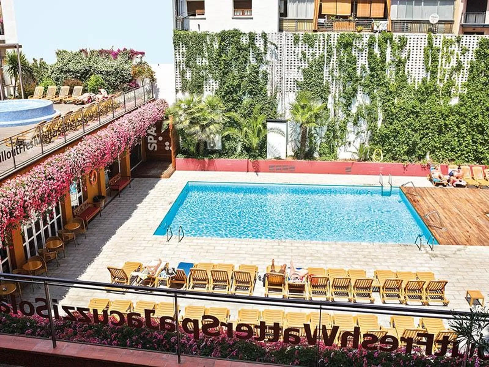 - Vonkajší bazén, ktorý je obklopený lehátkami a slnečníkmi (ktoré sú pri bazéne bezplatné)