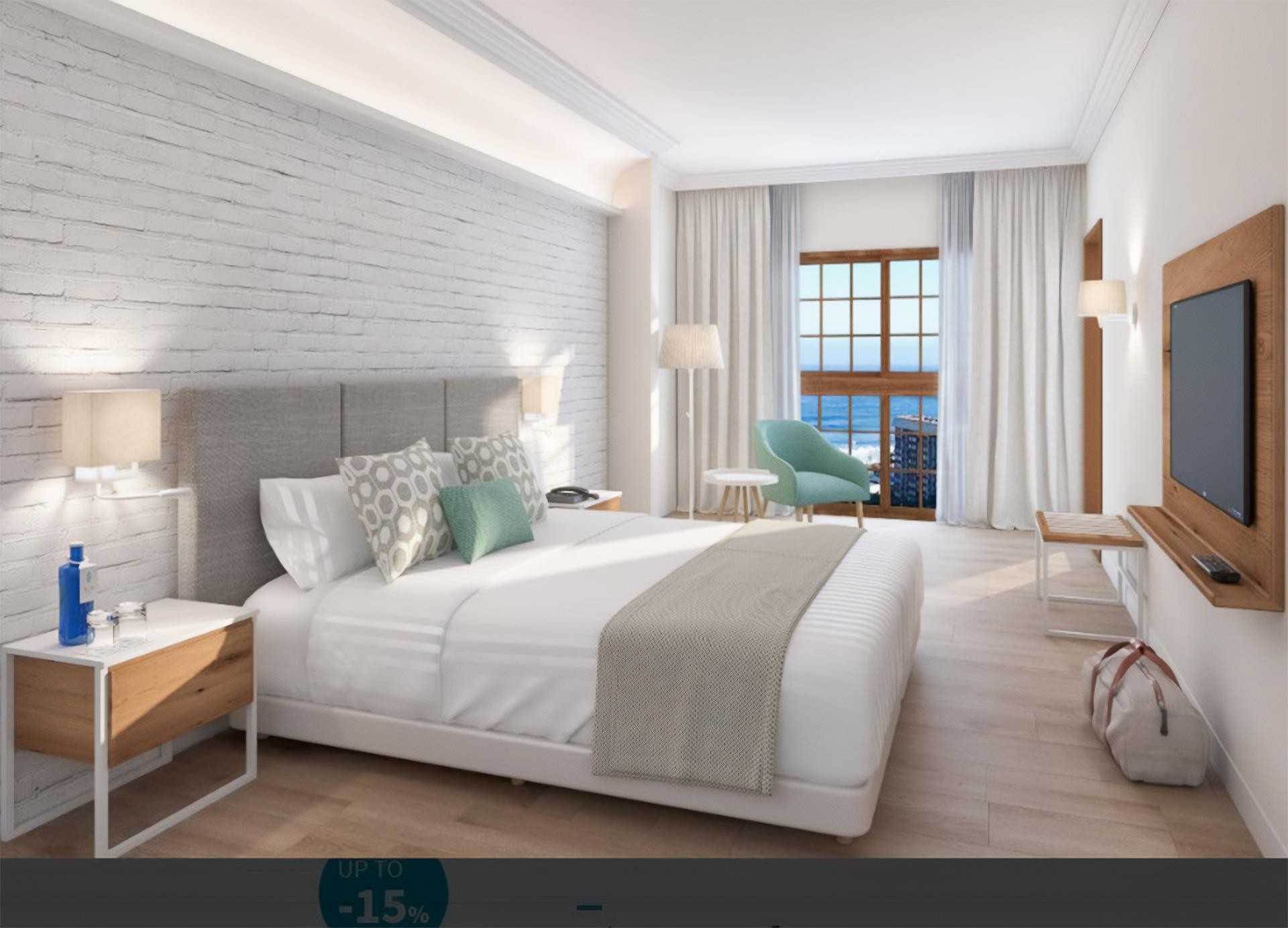 Hotel má rôzne typy izieb, pričom každá izba má základné vybavenie, ako sú kúpeľňa s toaletou, sušič vlasov, centrálny klimatizátor, oddelená spálňa, obývacia izba s rozkladacou pohovkou, TV/sat., telefón, minilednička, trezor a balkón alebo terasa. K dispozícii sú aj špeciálne typy izieb s výhľadom na hory, bočný výhľad na more, ako aj priamy výhľad na more.