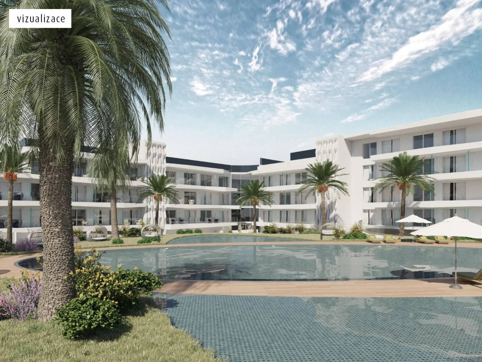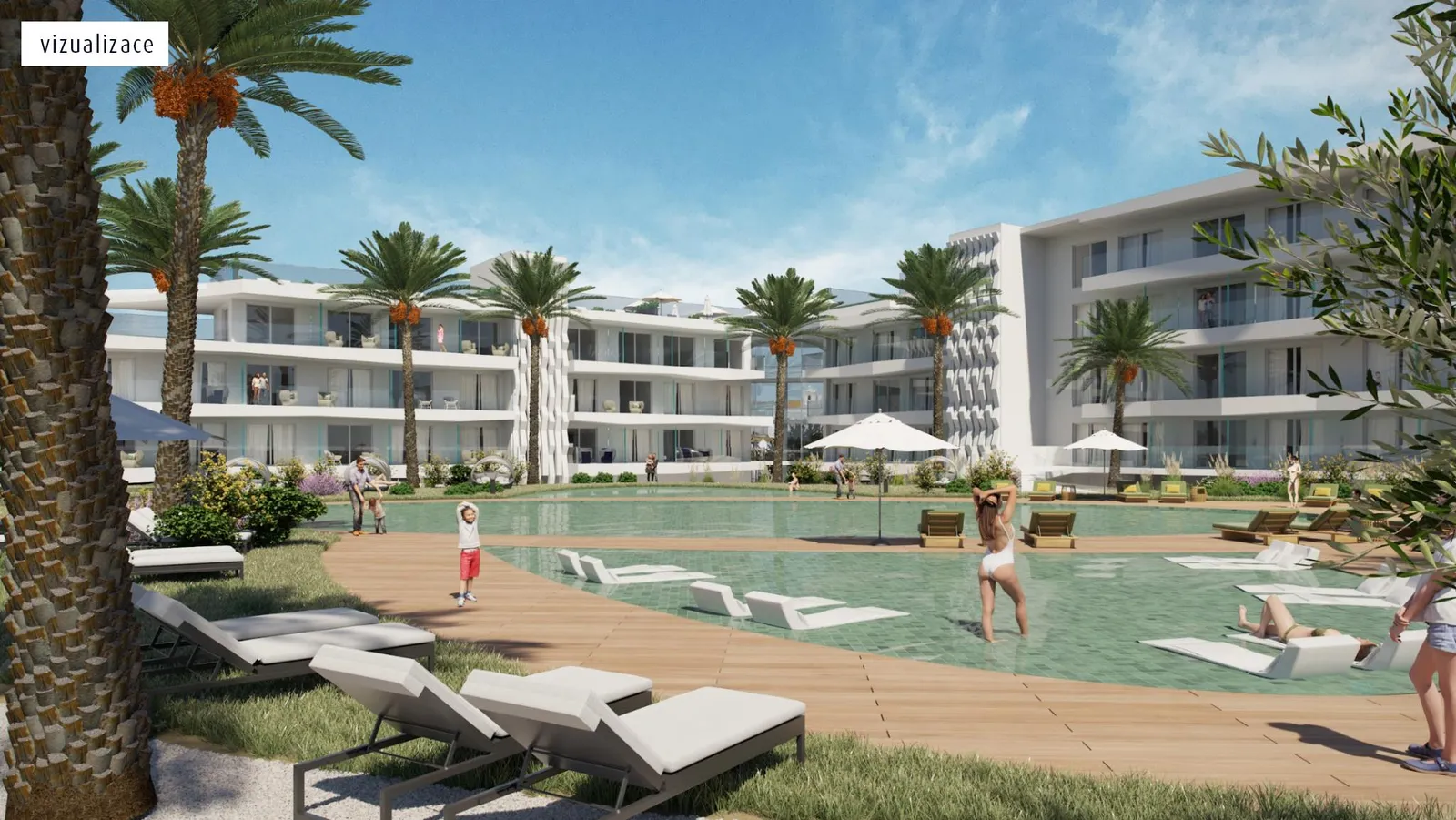 - Premium suita s terasou (45 m²): obsahuje samostatnú spálňu a obývaciu časť s gaučom a veľkou terasou vybavenou lehátkami.
