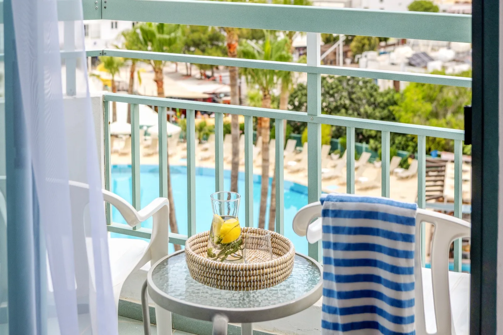 - Dvoulôžková izba s výhľadom na bazén: ponúka krásny výhľad na bazénovú plochu.