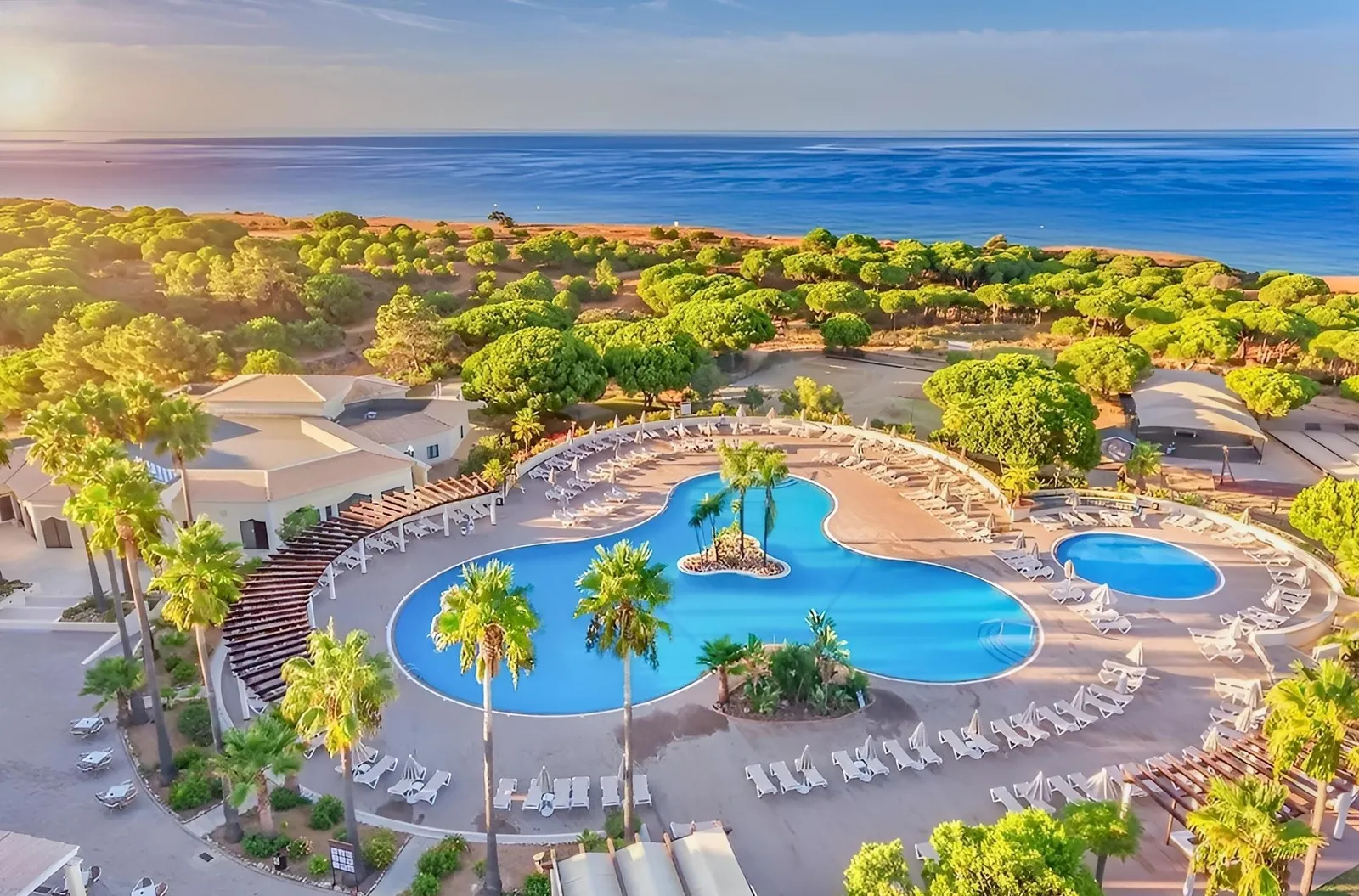 Adriana Beach Club je rozľahlý rezort, ktorý sa rozprestiera v krásnej zelenej oáze borovíc, a ponúka pokojné a komfortné prostredie, ktoré je ideálne pre rodinnú dovolenku. Hotel sa nachádza na piesočnom útesu a k širokej piesočnej pláži Falesia je to len približne 250 metrov, pričom hostia majú k dispozícii prístup po schodoch a bezplatné lehátka a slnečníky pri pláži.