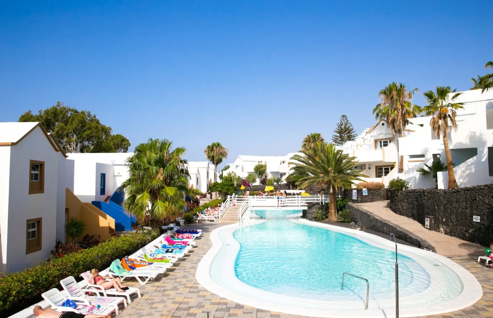 Aparthotel sa skladá z viacerých tradičných bielych budov, ktoré sú obklopené pekne udržiavanou záhradou. Medzi jeho vybavenie patrí recepcia so službami otvorenými 24 hodín denne, hlavnú reštauráciu (s detskými stoličkami a vegetariánskym menu), bar pri recepcii, snack bar pri bazéne a minimarket. Zmenáreň a možnosť využitia WiFi sú tiež k dispozícii (za poplatok - približne 2 EUR/hodina, 20 EUR/týždeň). Hotel ponúka aj služby práčovne, prenájmu áut a bicyklov za poplatok. K dispozícii je terasovitý bazén s vyhradenou časťou pre deti a ležadlami a slnečníkmi, ktoré sú bezplatné. Je potrebné poznamenať, že terén je viacúrovňový, čo môže byť nepraktické pre osoby s obmedzenou pohyblivosťou.