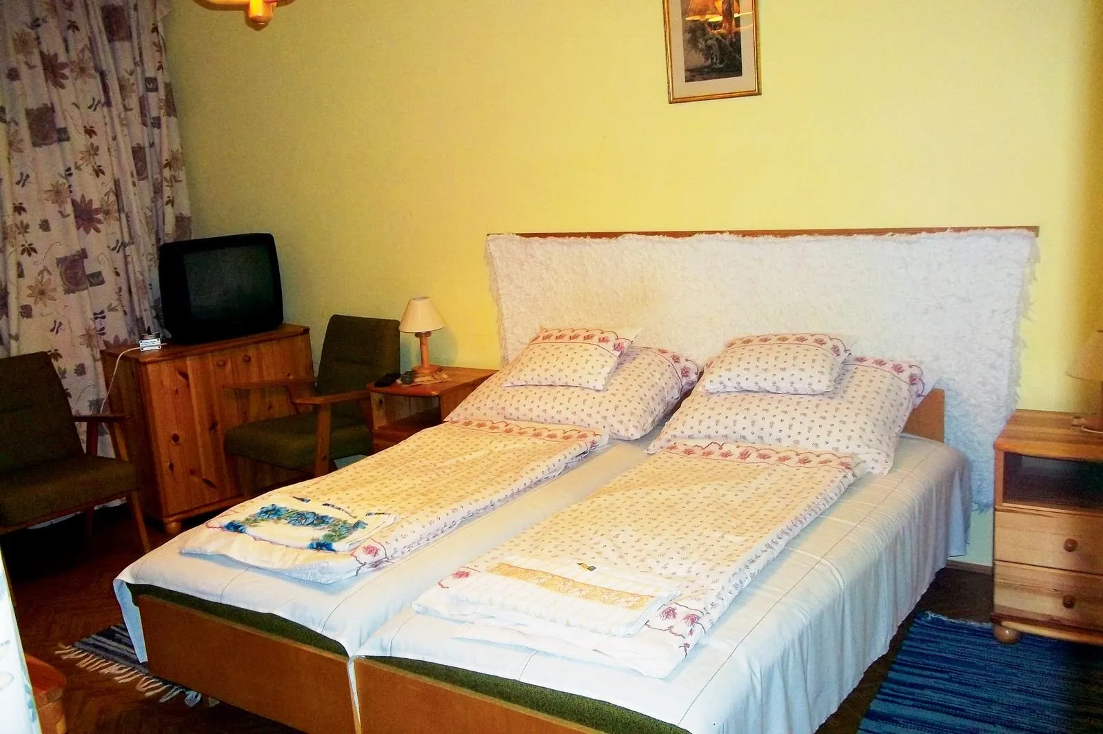Apartmánový dom ponúka rôzne typy ubytovania. Dostupné sú dvojlôžkové izby s možnosťou prístelky a tiež rodinné izby pre 4 osoby, ktoré majú dve spálne, čo je ideálne pre rodiny alebo skupiny priateľov. Všetky rodinné izby sú vybavené základným príslušenstvom, balkónom, chladničkou a televízorom. Kuchynský kút je vybavený základnými potrebami a elektrickým dvojvaričom, čo poskytuje možnosť prípravy jednoduchých jedál. Je dôležité poznamenať, že každý apartmán má iného majiteľa, pričom vybavenie môže byť odlišné.