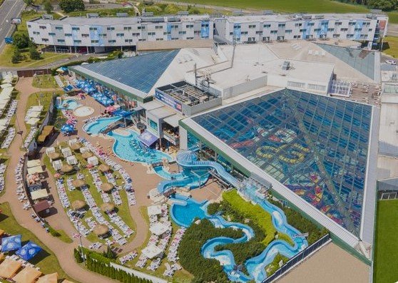 Najväčší wellness resort v strednej Európe na ploche 9000m2 zahŕňaVodný svets 3 palácmi a 12 tobogánmi, vírivkami, bazénmi, pomalou a vonkajšou divokou riekou. Vstup v cene ubytovania pozri Informácie.