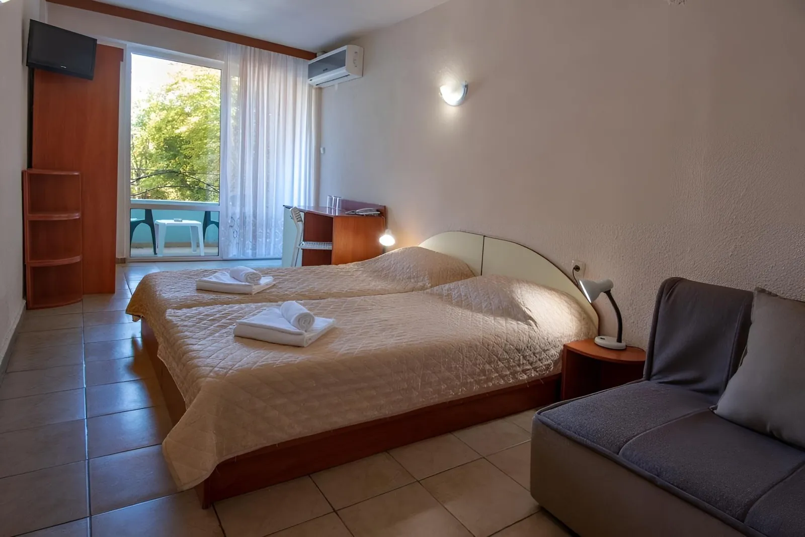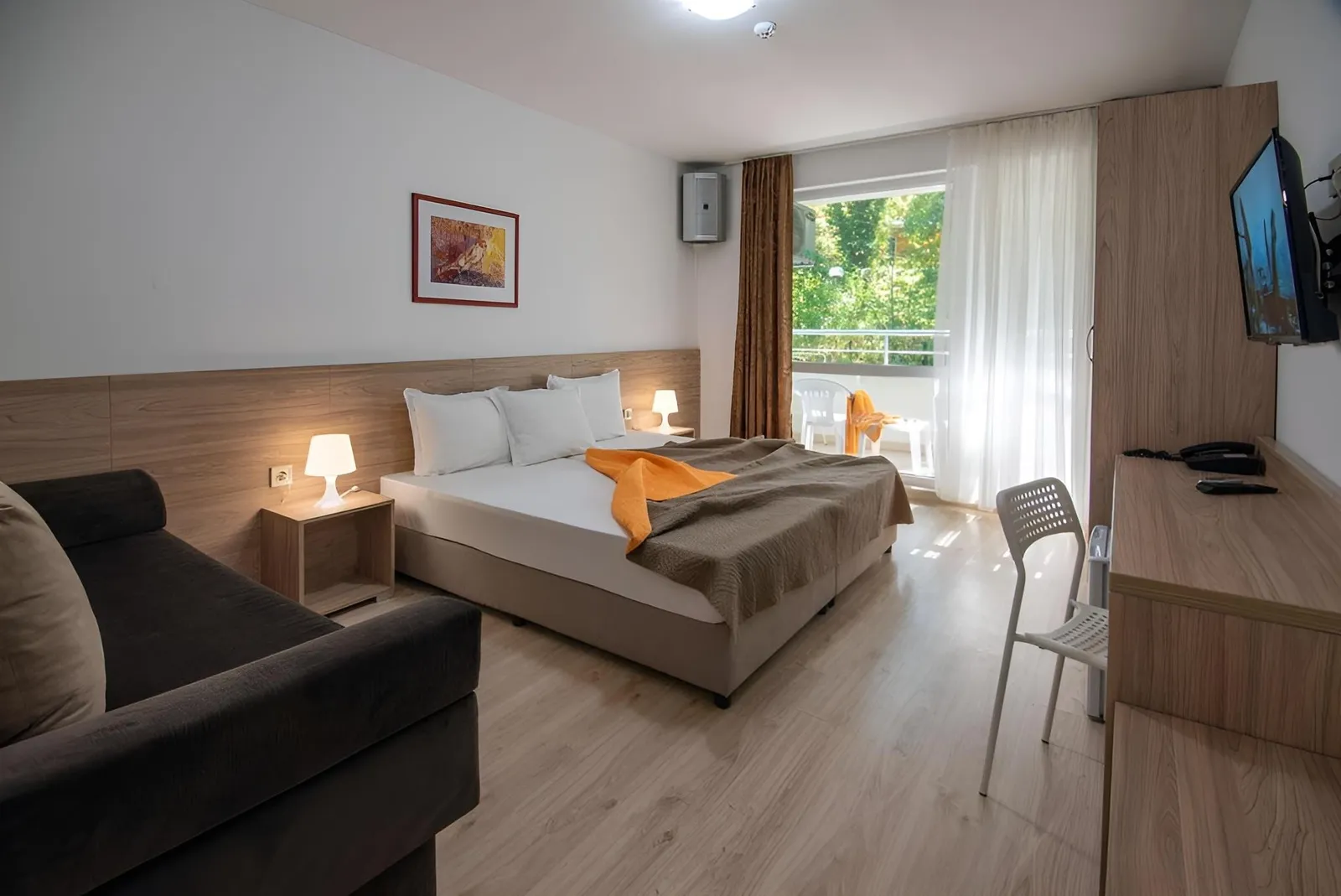 Das Hotel wurde 2020 renoviert und ist die perfekte Wahl für weniger anspruchsvolle Gäste aller Altersklassen. Umgeben von viel Grün können die Besucher die Schönheit der Natur genießen und zugleich die Nähe zum Zentrum des Ferienortes erleben, wo sich Geschäfte und Unterhaltungsmöglichkeiten nur wenige Gehminuten entfernt befinden.