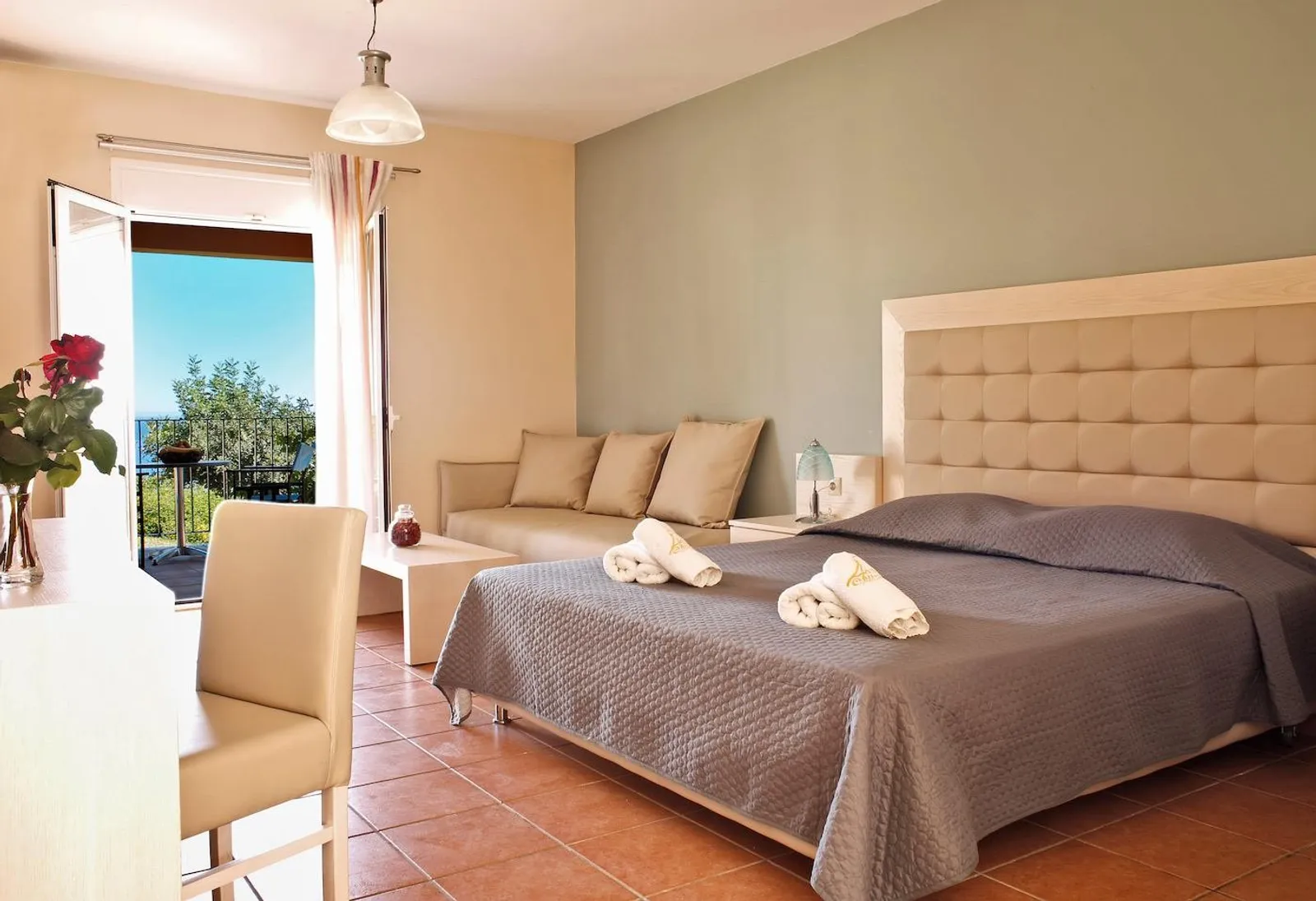 - Studio, výhľad na more — so zabudovanou kuchynkou, ideálne pre tých, ktorí preferujú flexibilnejšie pobyty.