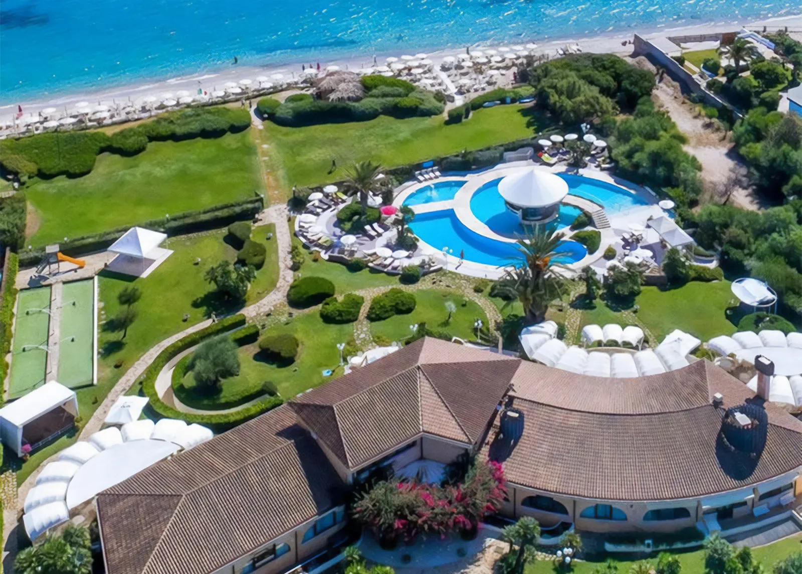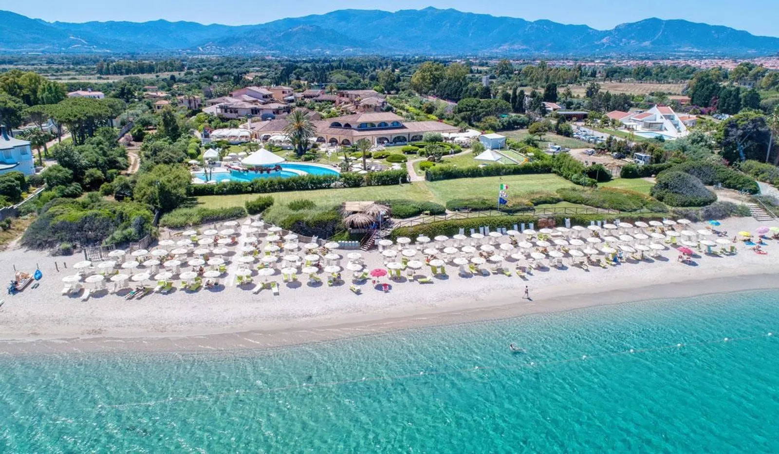 - Za poplatok: tenisové kurty so svetlom, biliard, požičovňa horských bicyklov, vodné športy na pláži a masáže. Golfové ihrisko Is Molas je vzdialené približne 6 km.