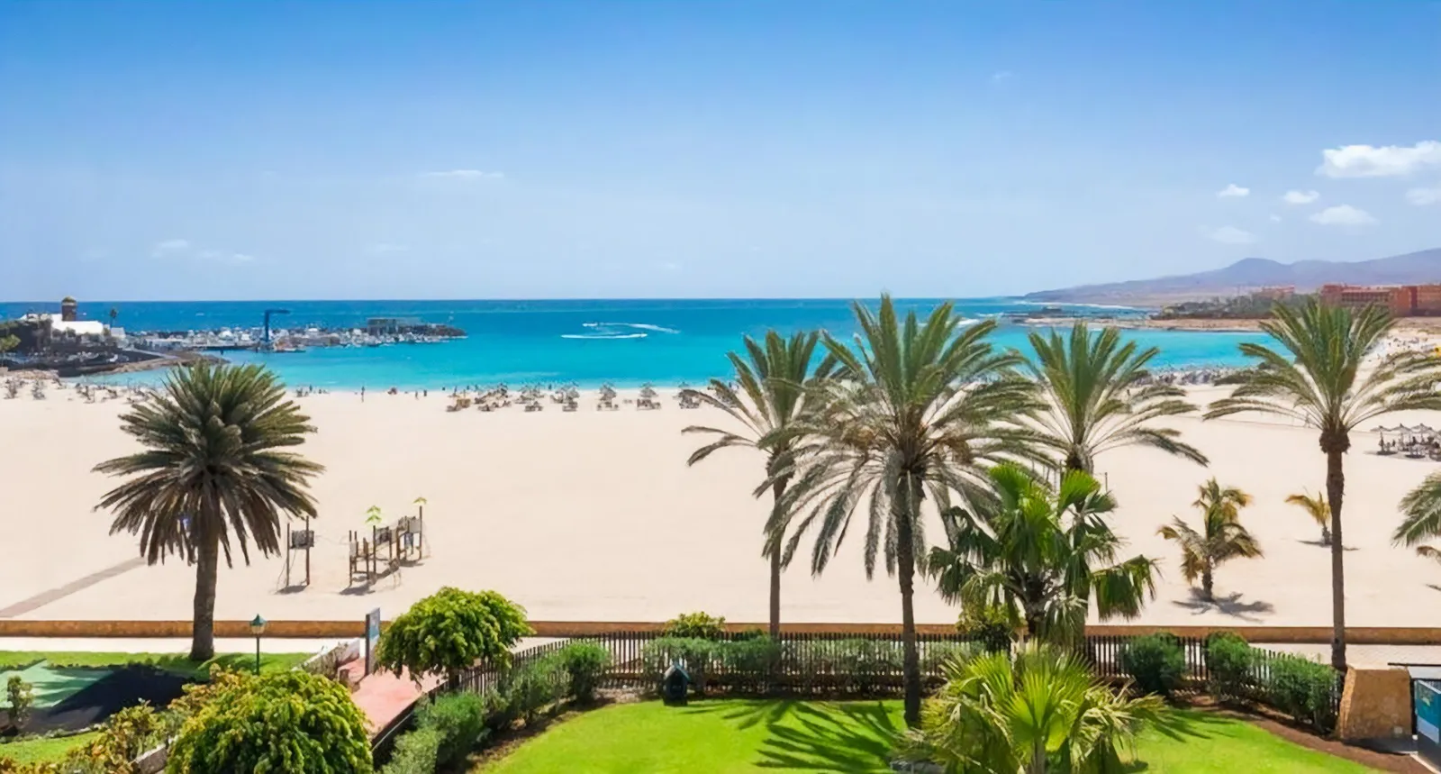 Široká piesočnatá pláž Caleta de Fuste je vzdialená len niekoľko krokov od hotela. Je ideálna na rodinné kúpanie a odpočinok na slnku, pričom lehátka a slnečníky sú na pláži k dispozícii za poplatok.