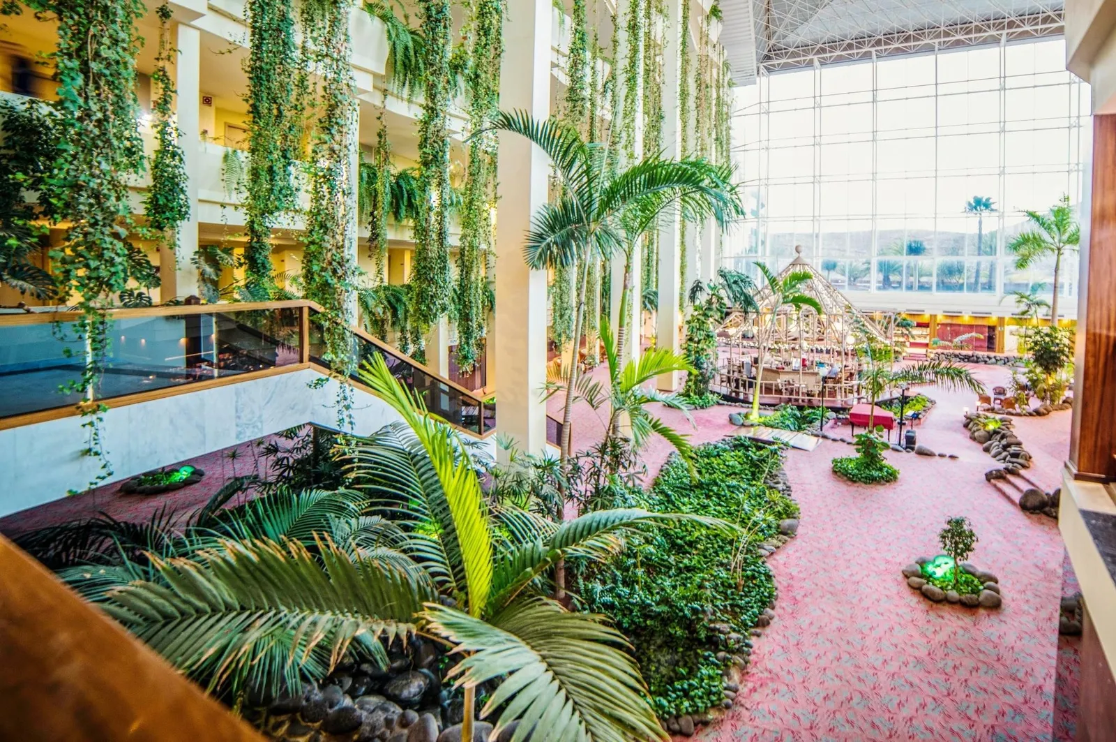 Hostia môžu využívať elegantnú vstupnú halu s recepciou, panoramatické výťahy, ako aj množstvo barov a reštaurácií, vrátane dvoch tematických podnikov. V areáli sú dostupné obchodíky, spoločenské miestnosti a konferenčné sály, čo je ideálne pre pracovné stretnutia či rôzne udalosti.