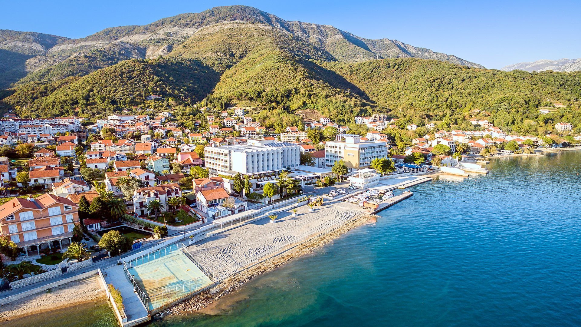 Hotel sa nachádza v malom, malebnom mestečku Bijela pri Kotorskom zálive. V mieste sú obchody a reštaurácie. Hotel leží pri miestnej ceste. Mesto Herceg Novi je vzdialené cca 12 km, Kotor 33 km, Dubrovník 60 km