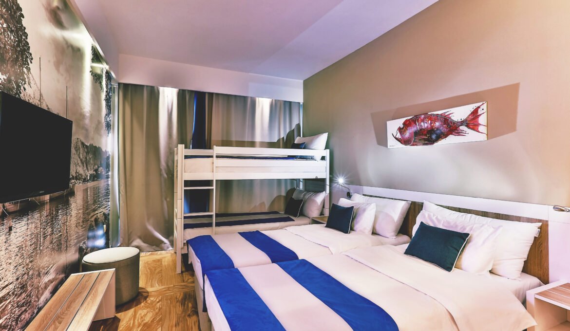 Za príplatok je k dispozícii rodinná izba Superior až so dvoma prístelkami a s výhľadom na more.