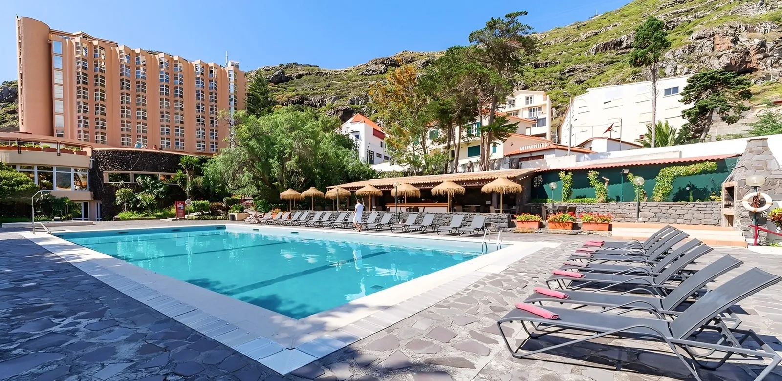 V malebnom rybárskom mestečku Machico, ktoré sa nachádza približne 26 km východne od Funchalu, sa možno stretnúť so štýlovým 4-hviezdičkovým hotelom Dom Pedro Madeira. Tento hotel sa môže pochváliť úchvatnými výhľadmi na Atlantický oceán a okolitú horskú scenériu. Park priamo pri skalnatom pobreží vytvára pokojné prostredie s ľahkým prístupom k pláži; umelo vytvorená piesočnatá pláž so svetlým pieskom je vzdialená len približne 400 metrov.