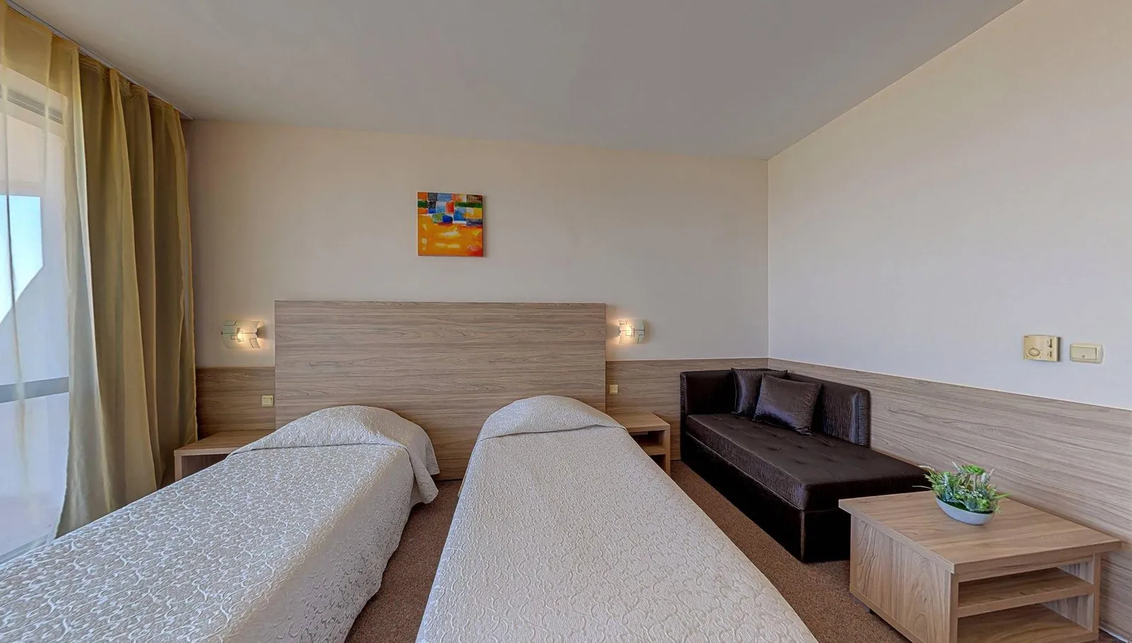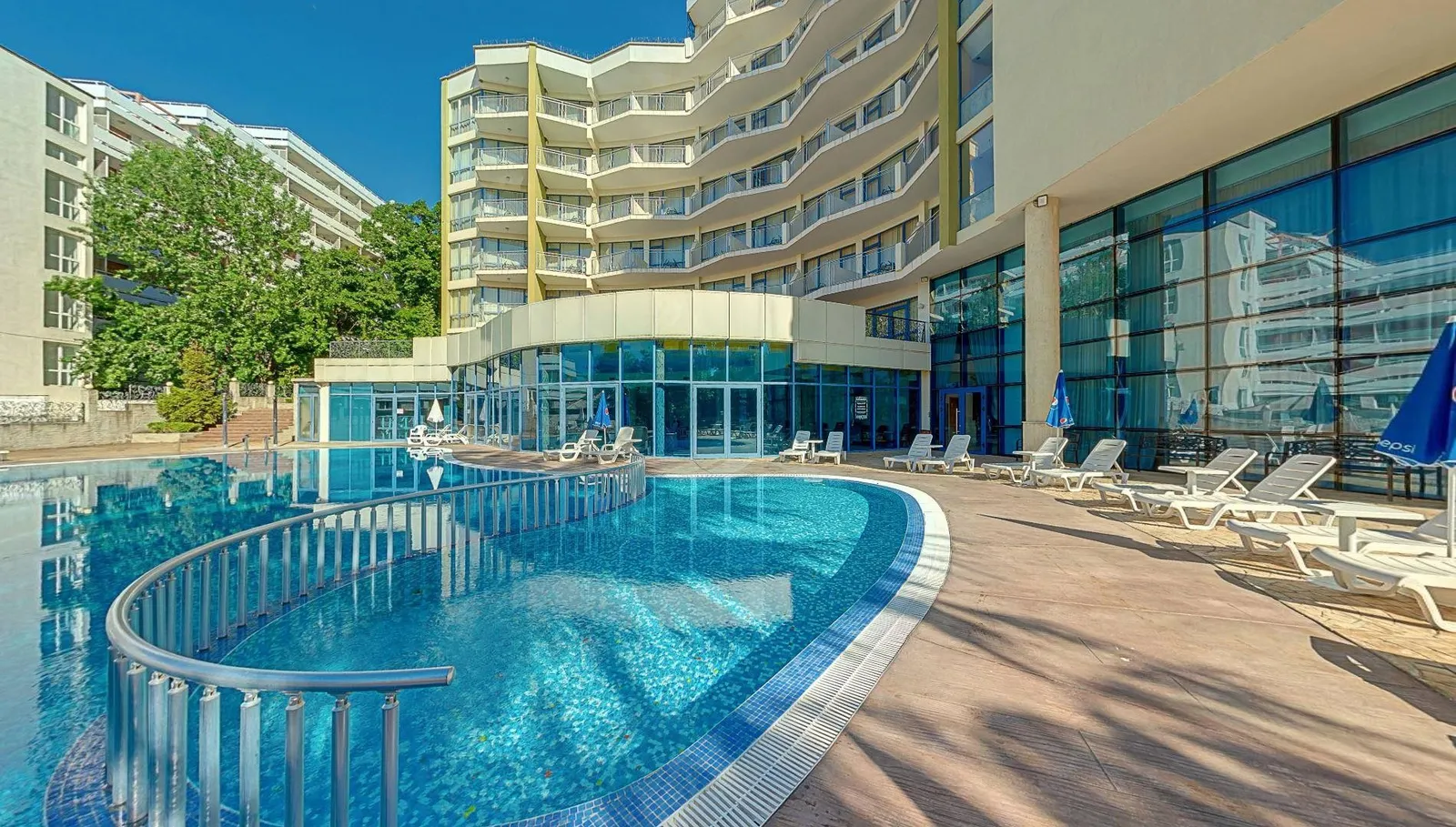 Tento elegantný štvorhviezdičkový hotel sa nachádza v južnej časti známeho letoviska Zlaté piesky, kde môžete objaviť krásu a pohodlie, ktoré ponúka. Jeho ideálne umiestnenie iba 400 metrov od dlhých piesočnatých pláží zaručuje, že slnko a príjemné prostredie mora sú vždy na dosah ruky.
