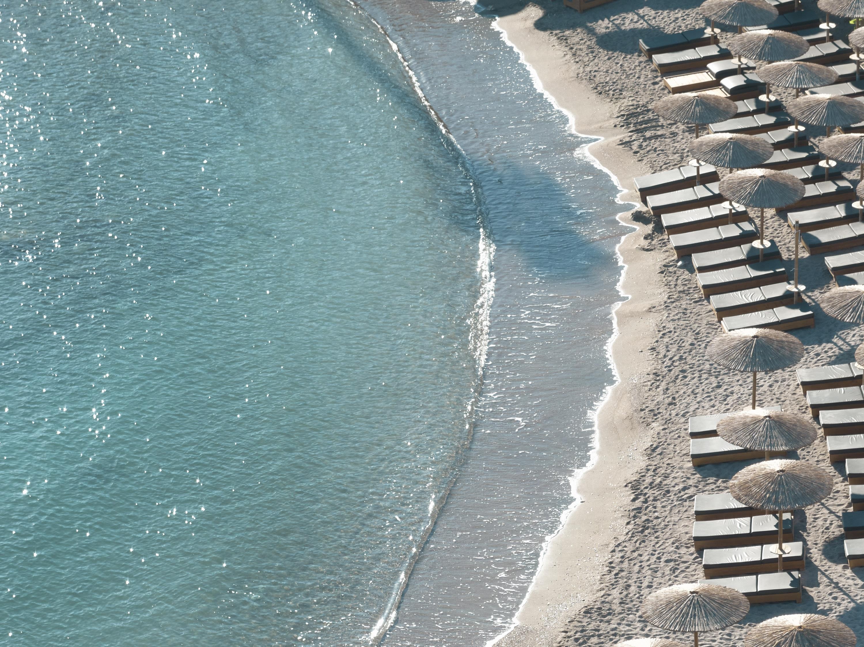 Piesočno-kamienková pláž priamo pri hoteli. Ležadlá a slnečníky zadarmo. Vonkajšie sprchy pri bazéne aj na pláži.
