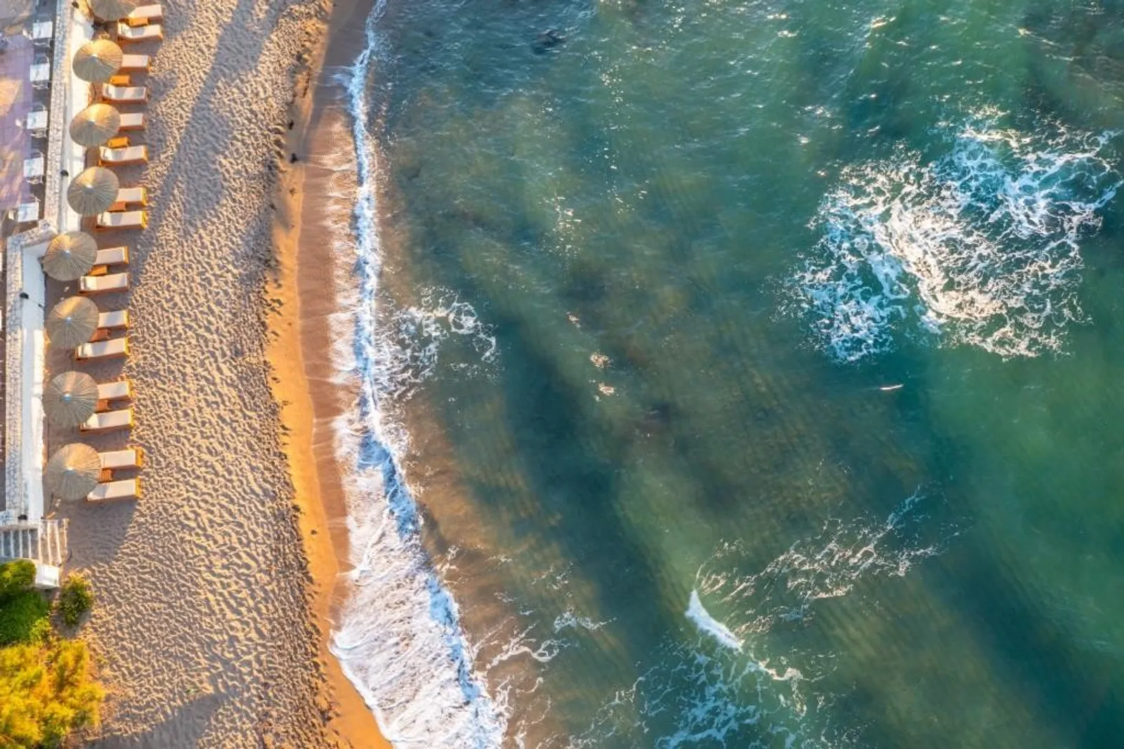 Hotel se může pochlubit písečnou pláží s oblázky vzdálenou cca 100 m od areálu (přes pobřežní komunikaci), kde je doporučeno nosit obuv do vody. Pro hosty je zajištěn bezplatný shuttle bus na hotelovou písečnou pláž, která se nachází cca 5 km daleko, a to s pravidelnou frekvencí 5x denně v období od 10:30 do 18:00.
