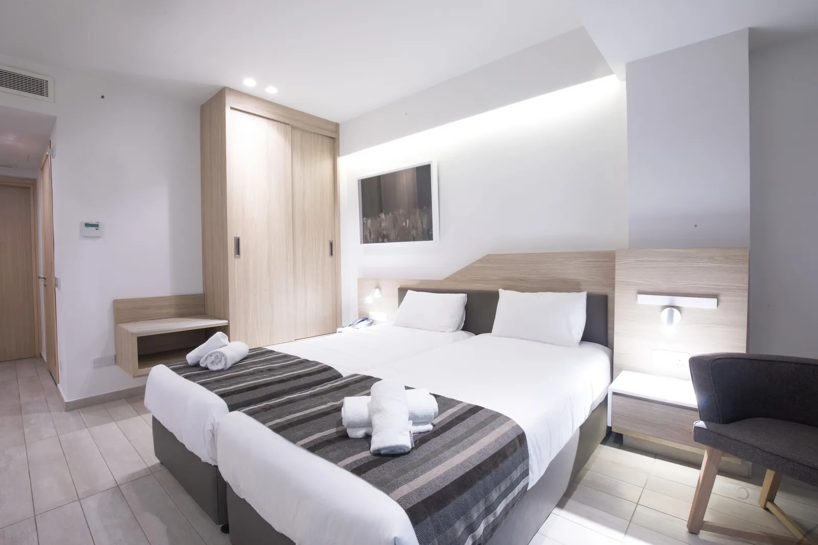 Hotel disponuje 179 modernými izbami, ktoré sú vybavené balkónom alebo terasou. Každá izba má kúpeľňu so sprchou a WC, sušič vlasov, klimatizáciu, trezor, miniledničku, televízor so satelitným príjmom a telefón.