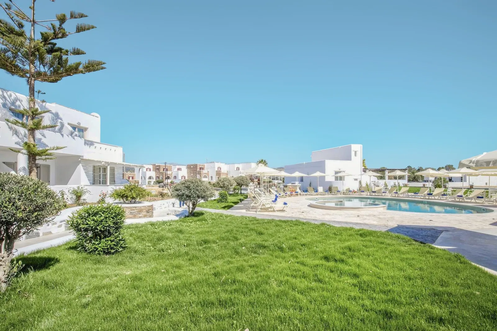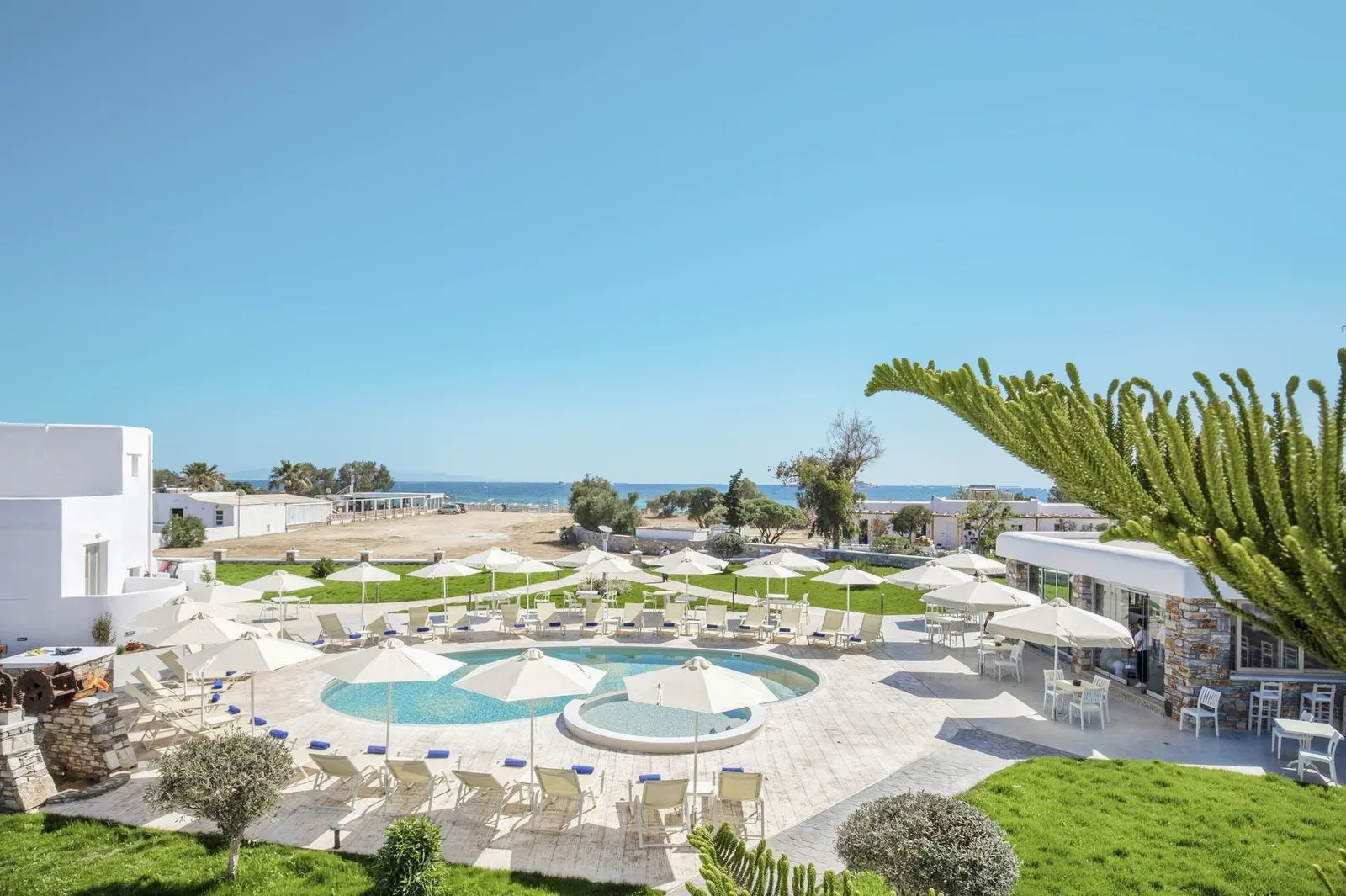Pláž Plaka je na dosah ruky, len krátka prechádzka trvá okolo 100 metrov. Centrum letoviska Agia Anna sa nachádza približne 1,6 km od hotela a hlavné mesto Naxos je vzdialené okolo 7,5 km. Pre tých, ktorí plánujú navštíviť Santorini, je letisko Santorini (JTR) vzdialené približne 112 km, pričom presuny sa obvykle kombinujú medzi autobusom a trajektom. Pri záujme o kombinované pobyty medzi Naxosom a Santorinim sa odporúča vopred overiť dostupnosť leteniek a ubytovania.
