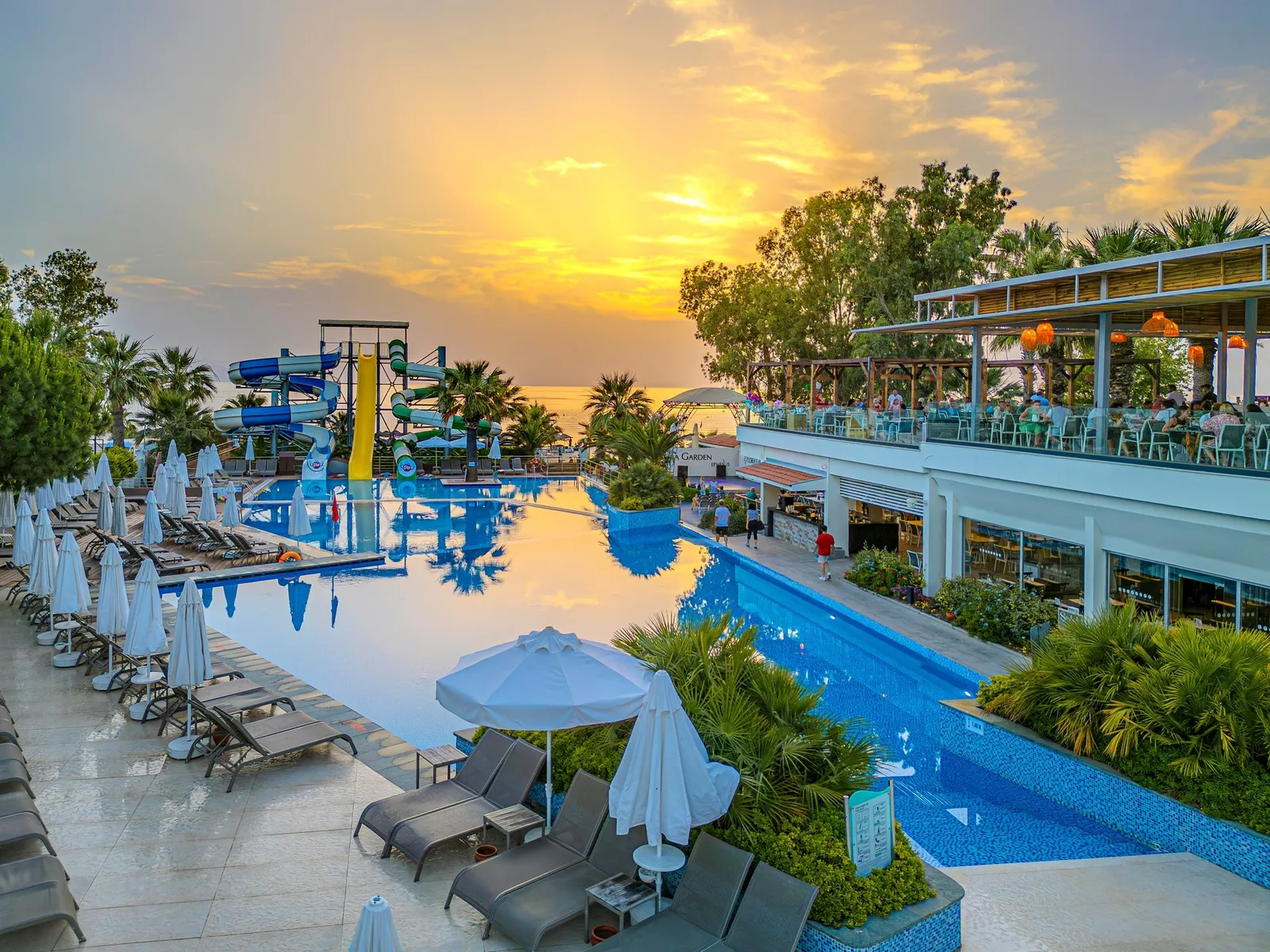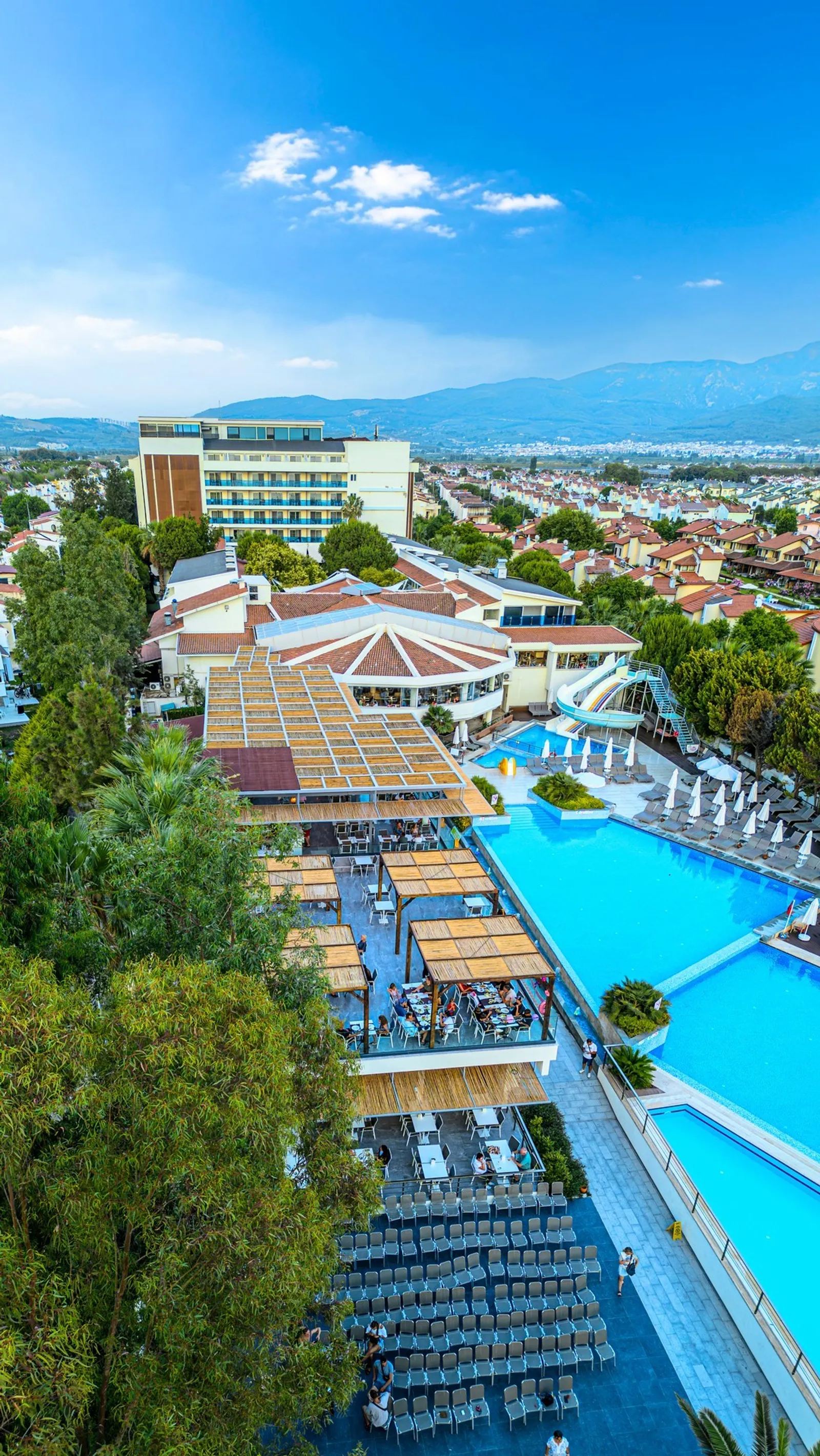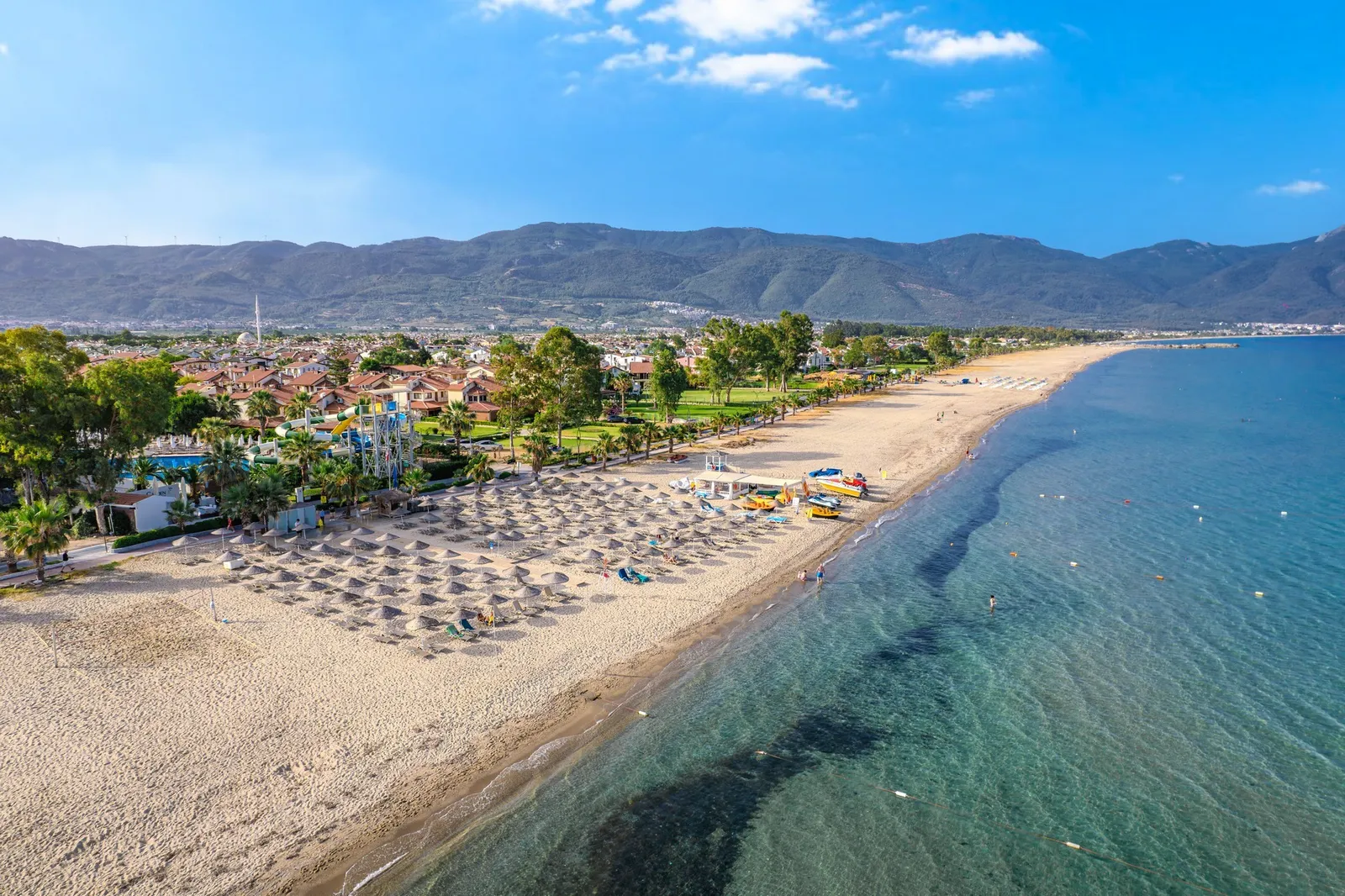 Hostia určite ocenia priamy prístup na pláž, kde sú k dispozícii slnečníky, lehátka a osušky úplne zadarmo. Okrem toho hotel ponúka rozsiahle bazény, vrátane vnútorného bazéna a aquaparku s detskými šmykľavkami. Nechýba ani bohatý animačný program a relaxačné SPA centrum s autentickými tureckými kúpeľmi.