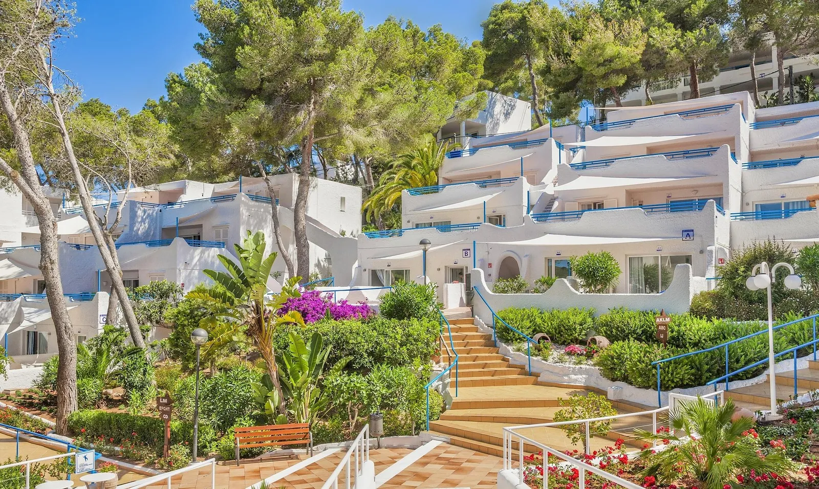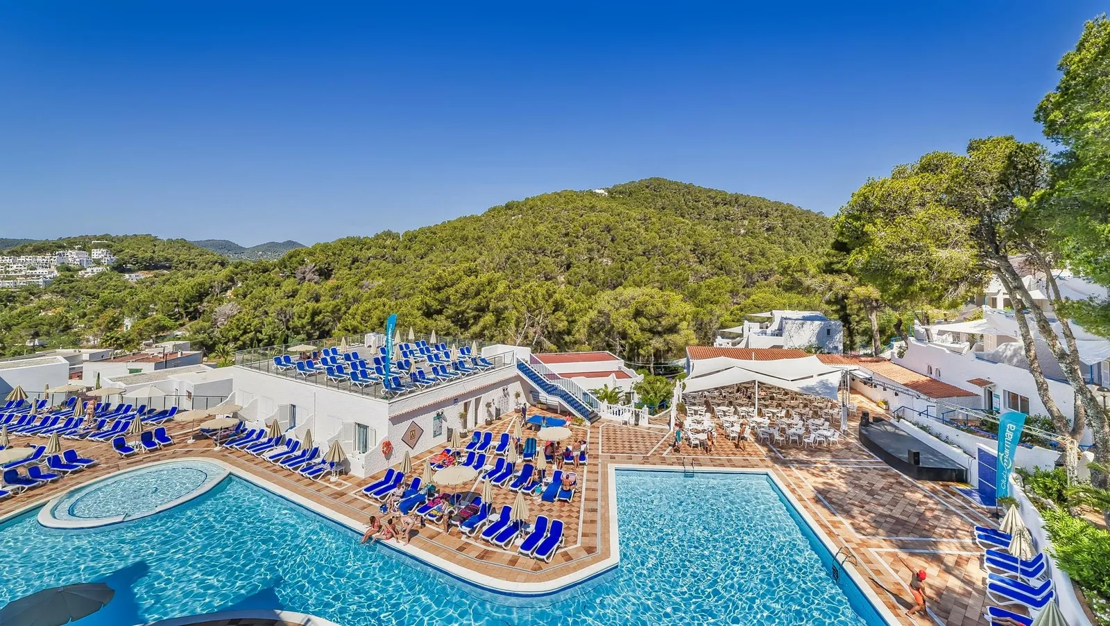 Písečná pláž Cala Llonga s pozvoľným vstupom do mora sa nachádza približne 700 metrov dole kopcom od hotela. Hlavné mesto Ibiza je vzdialené asi 10 km a letisko cca 20 km. V blízkosti hotela sú dostupné obchodné možnosti a autobusová zastávka, čo zaisťuje snadný prístup do okolia.