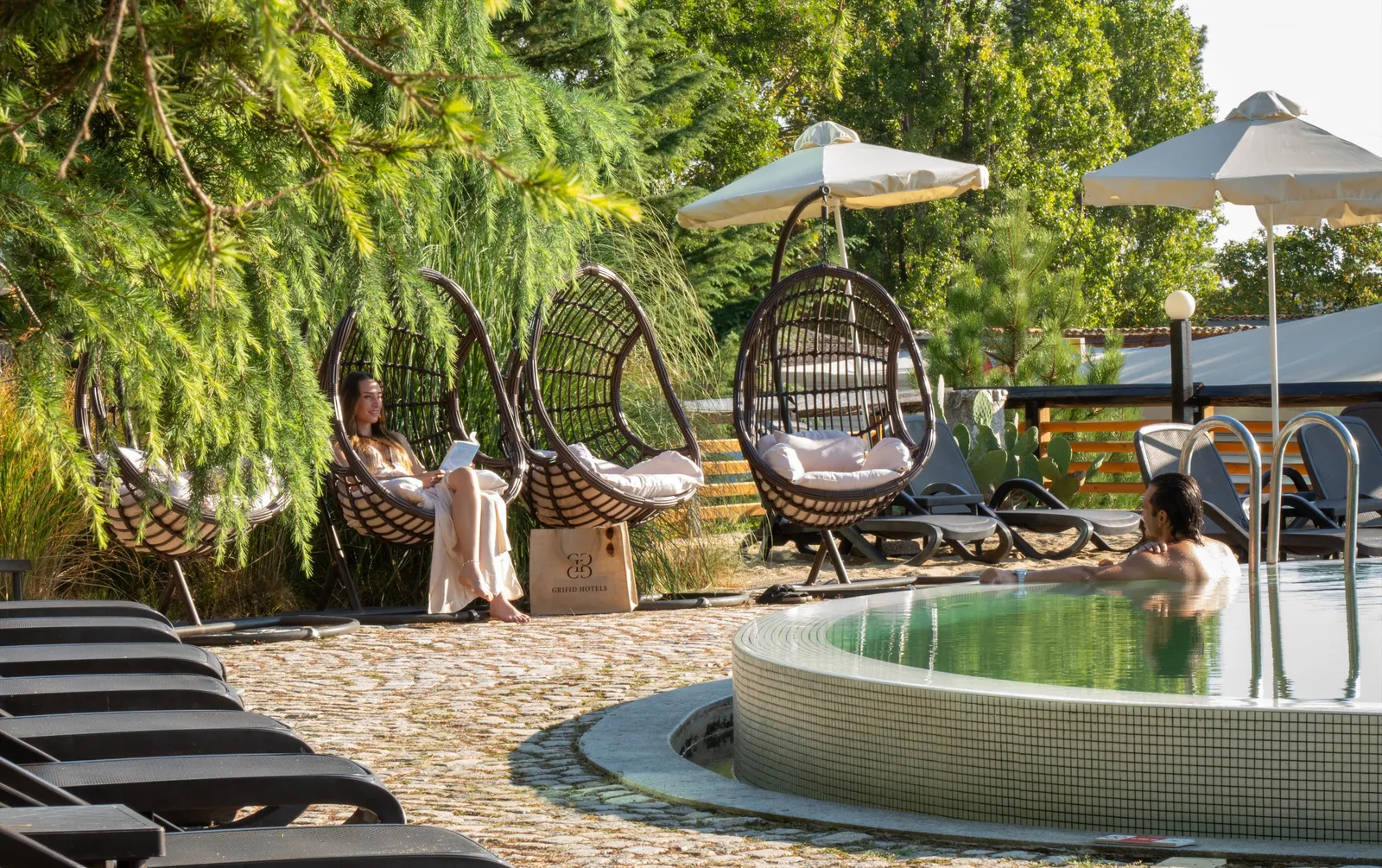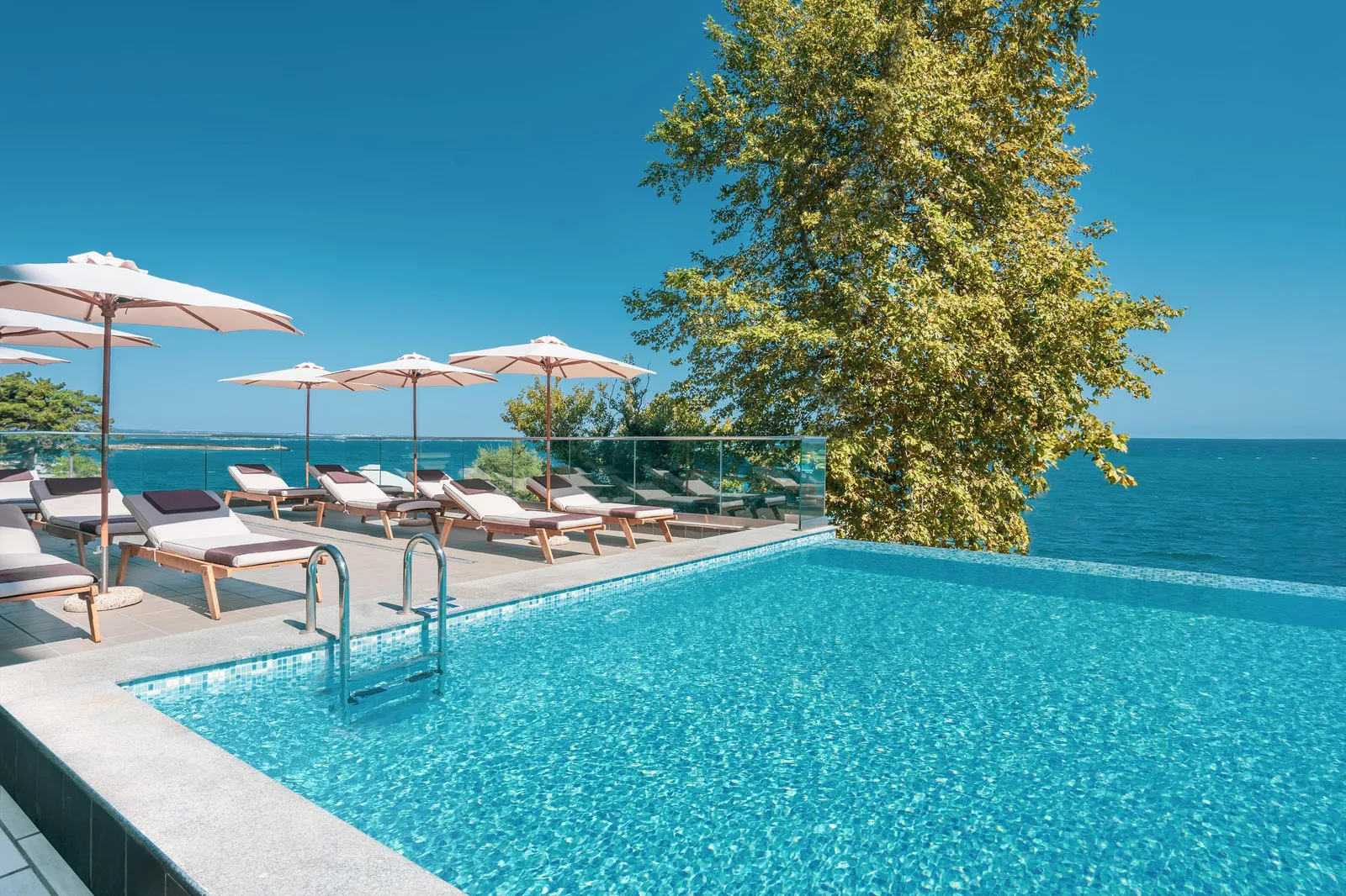 Pre tých, ktorí sa radi osviežia, sú k dispozícii dva vonkajšie bazény, vrátane elegantného infinity bazéna a jedinečného bio-bazéna s prírodným kamienkovým dnom. Piesočnatá pláž je len 20 metrov od hotela, pričom pre hostí sú k dispozícii 1 slnečník a 2 lehátka na izbu zdarma, v závislosti od dostupnosti, a plážový bar. Hostia môžu taktiež využiť prenájom plážových altánkov za poplatok.
