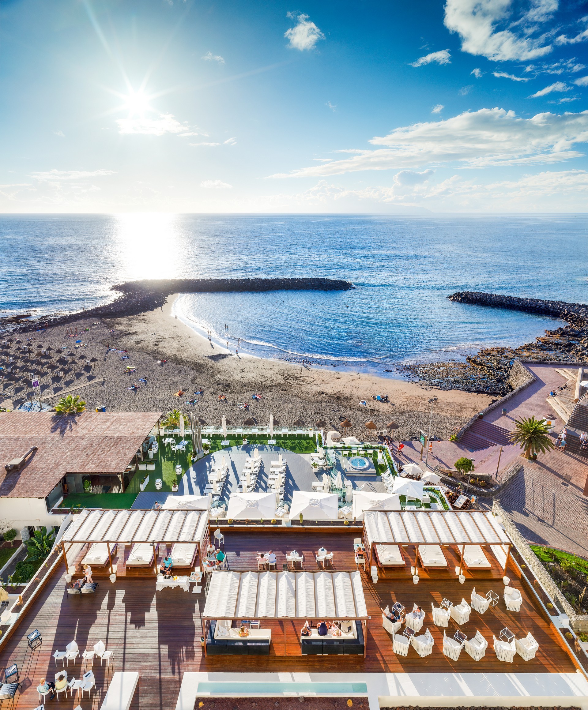 H10 Gran Tinerfe je elegantný hotel situovaný na malebnom pobreží ostrova Tenerife, ktorý ponúka priamy prístup na známy pláž El Bobo. Nachádza sa vedľa kasína Playa de las Américas a v blízkosti nájdete množstvo reštaurácií, barov a obchodov. Medzi populárne atrakcie patrí aj vodný park Siam, ktorý je vzdialený iba približne 1 km, rovnako ako jachtový prístav Puerto Colón.
