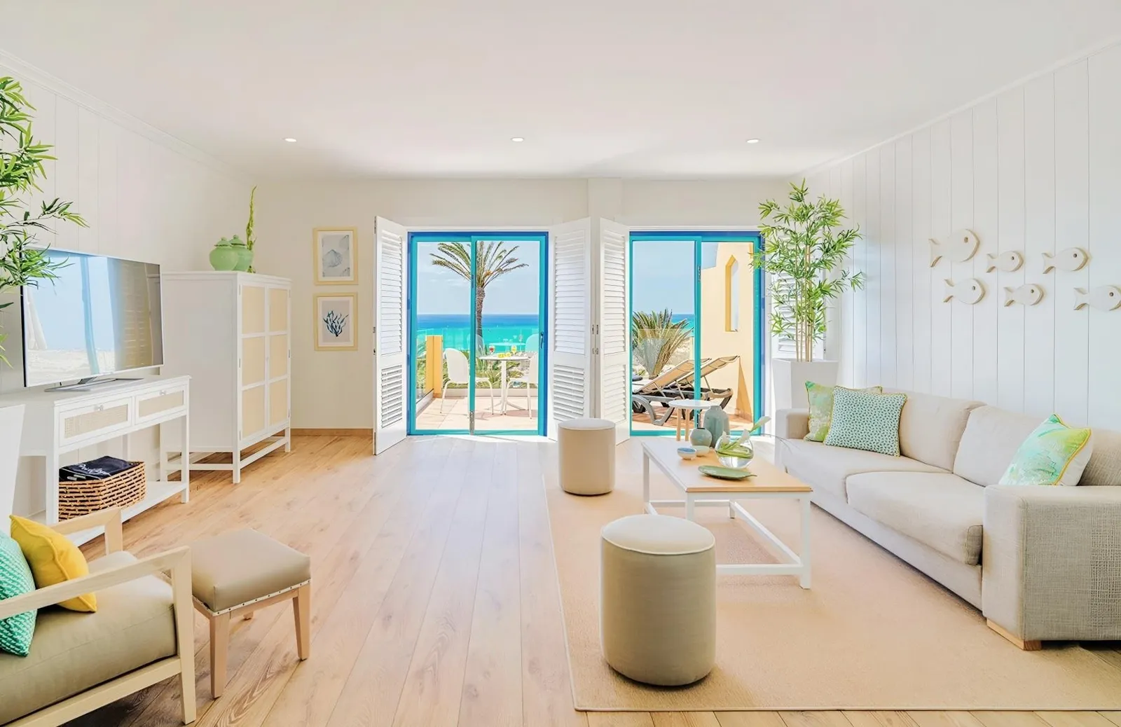 - Junior suity, ktoré sú vybavené samostatnou spálňou a obývacou časťou s bočným výhľadom na more.