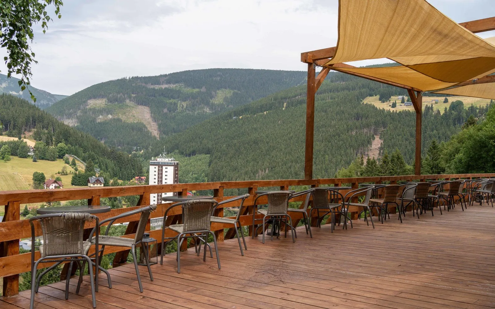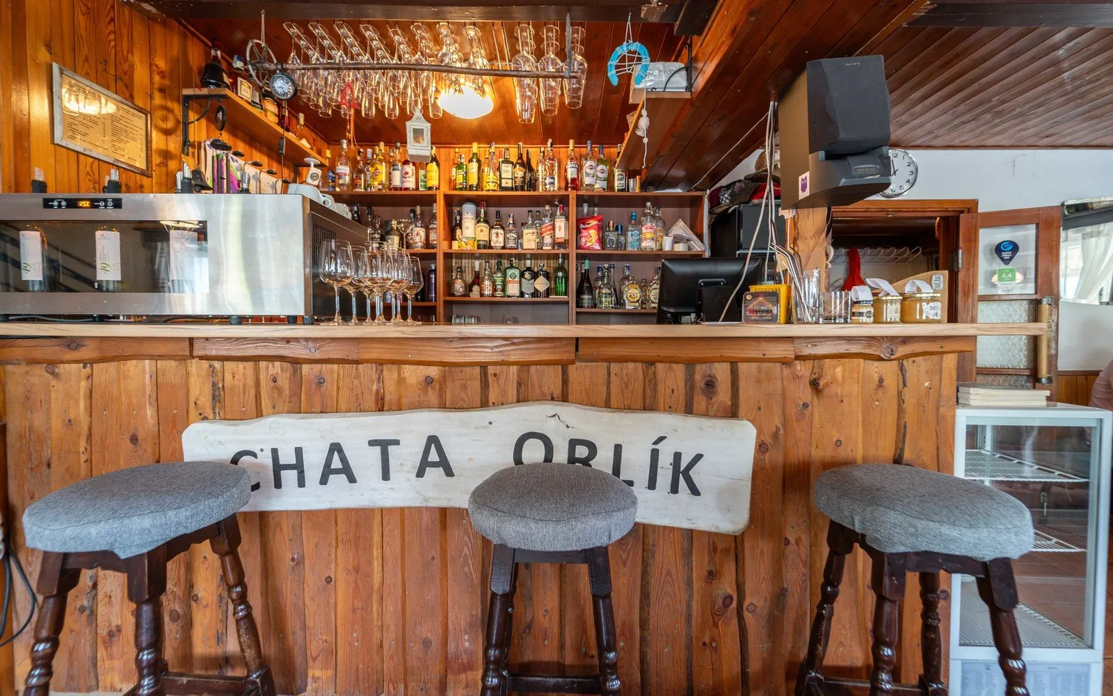 Horská chata Orlík sa nachádza na strmšom svahu a je situovaná v polosamote, približne 300 metrov nad centrom mesta, kam sa dá pohodlne prejsť za asi 20 minút.