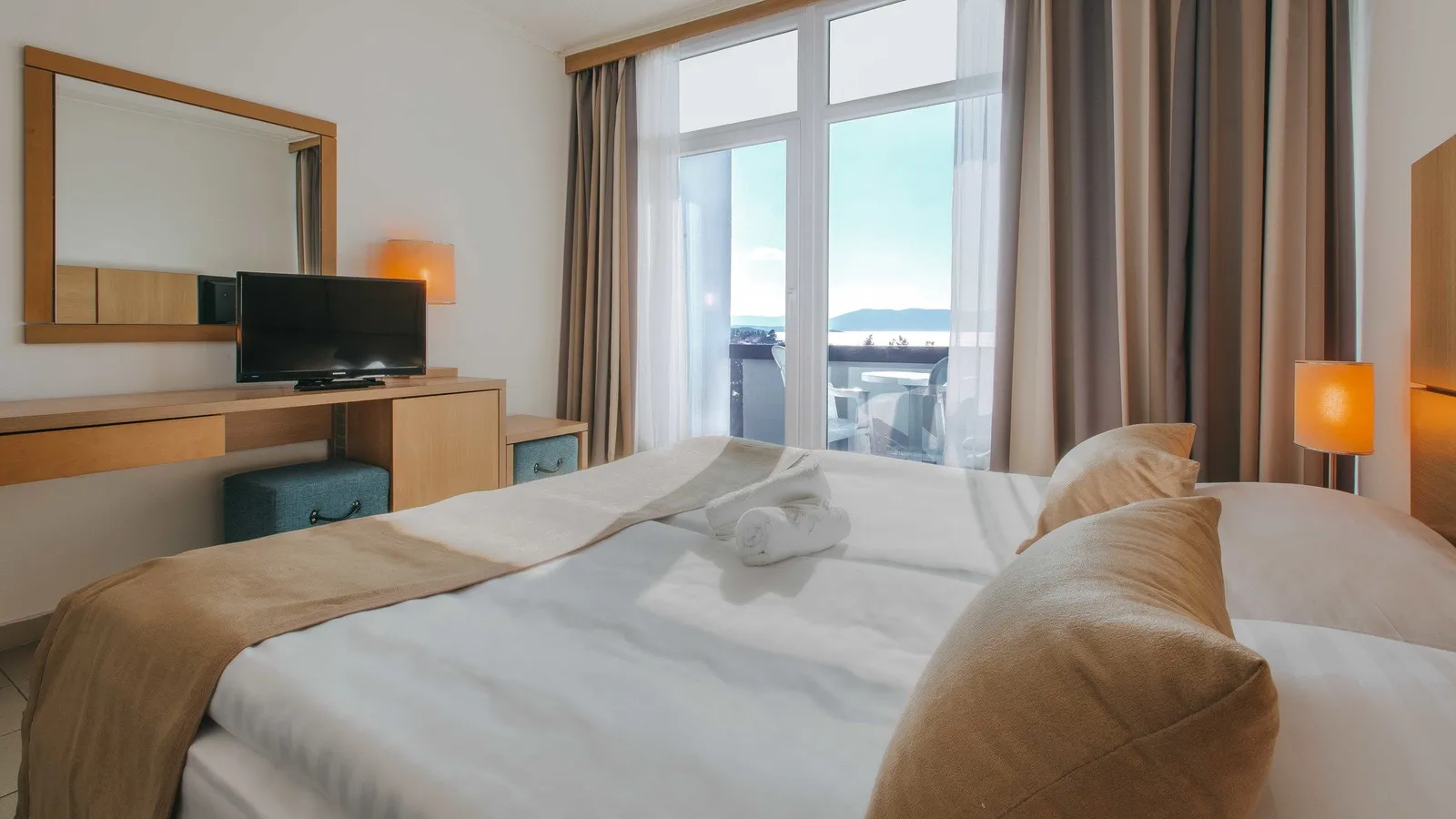 Hotel ponúka štandardné dvojlôžkové izby (2+0, 2+1) s možnosťou prístelky. Izby sú vybavené vlastným sociálnym zariadením (kúpeľňa, WC), klimatizáciou, TV/Sat., Wi-Fi pripojením, telefónom a minibarm. S príplatkom sú dostupné izby s balkónom na morskú stranu, ako aj superior izby (2+2) s možnosťou dvoch prísteliek pre deti (rozkladací gauč) a balkónom. Superior izby sa nachádzajú v hlavnej budove, zatiaľ čo Comfort izby sú umiestnené v vedľajšej budove, ktorá je prepojená s hlavným objektom.