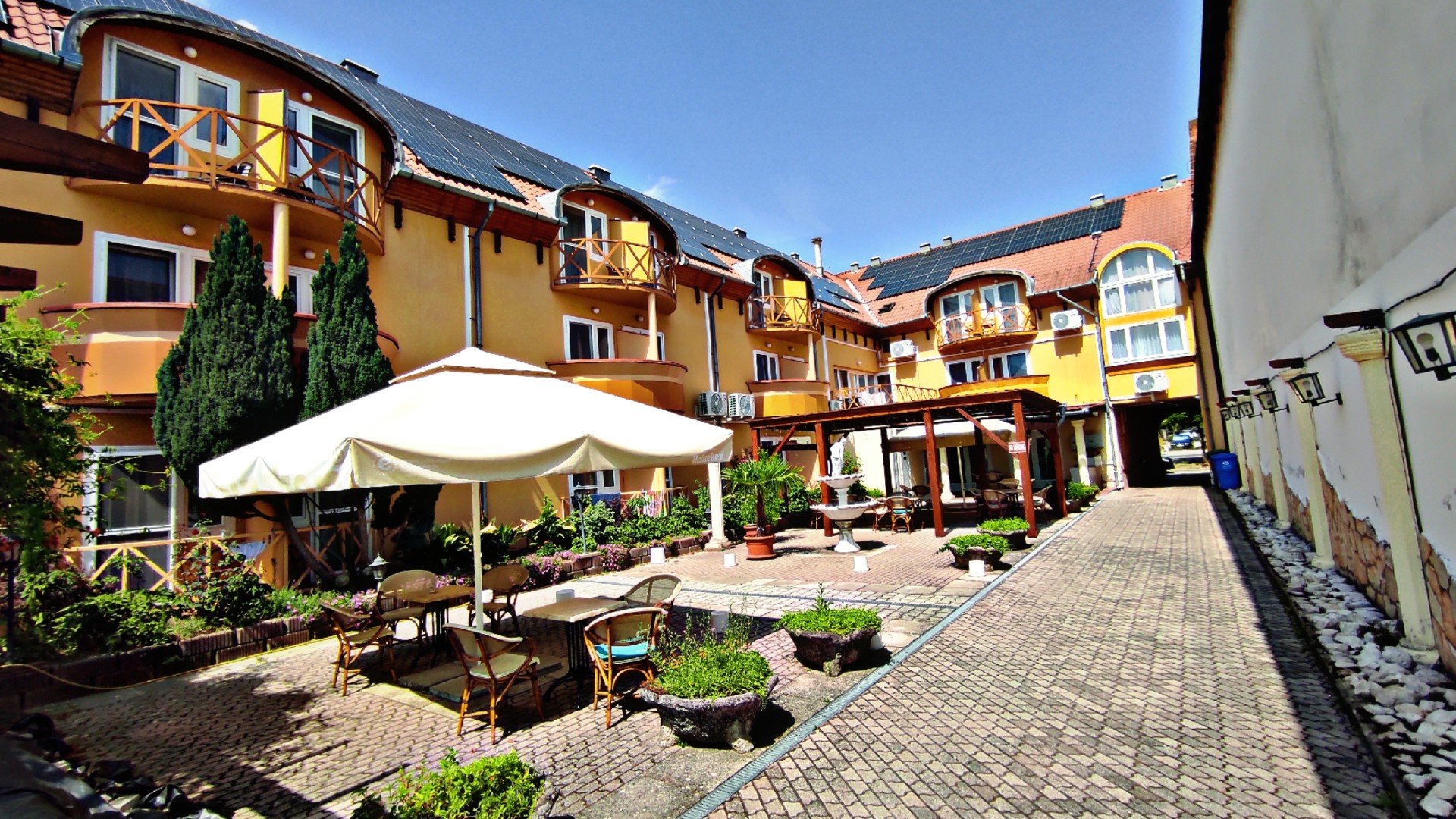 Hotel je situovaný na hlavnej triede v centre mesta, na dohľad termálnych kúpeľov.