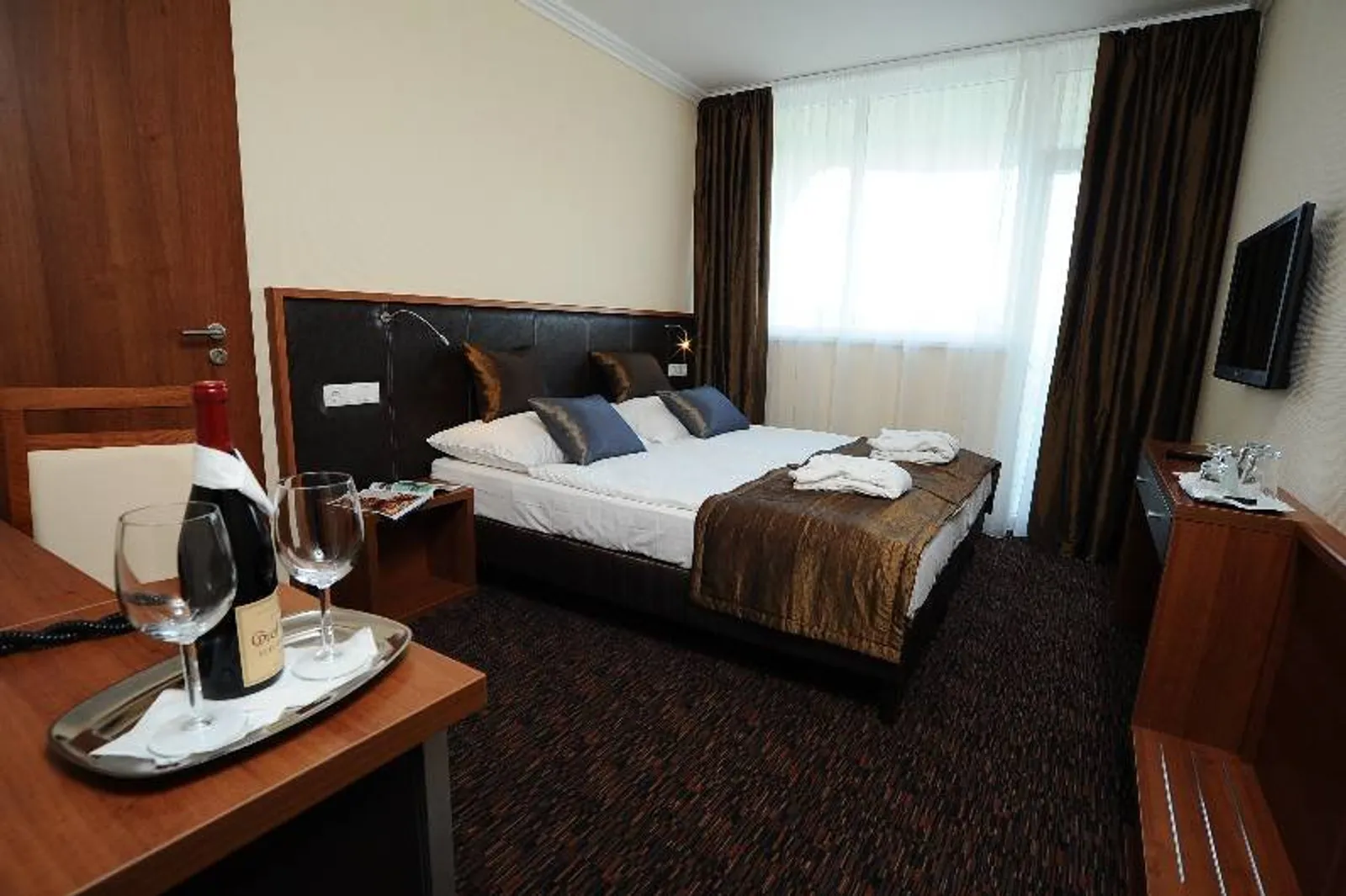 Hotel disponuje dvoma krídlami - historickým a moderným. Hostia môžu využívať rôzne zariadenia, ako sú bazén, sauna, solárium a množstvo ďalších wellness služieb. K dispozícii sú aj bar, reštaurácia, pub, letná terasa, Wi-Fi pripojenie, parkovisko, kaderníctvo, detský kútik, internetová miestnosť, trezor a obchod. Na relaxáciu si môžu hostia vychutnať hry ako bowling alebo biliard. Navyše, klienti dostanú lístok do Egerských termálnych kúpeľov.