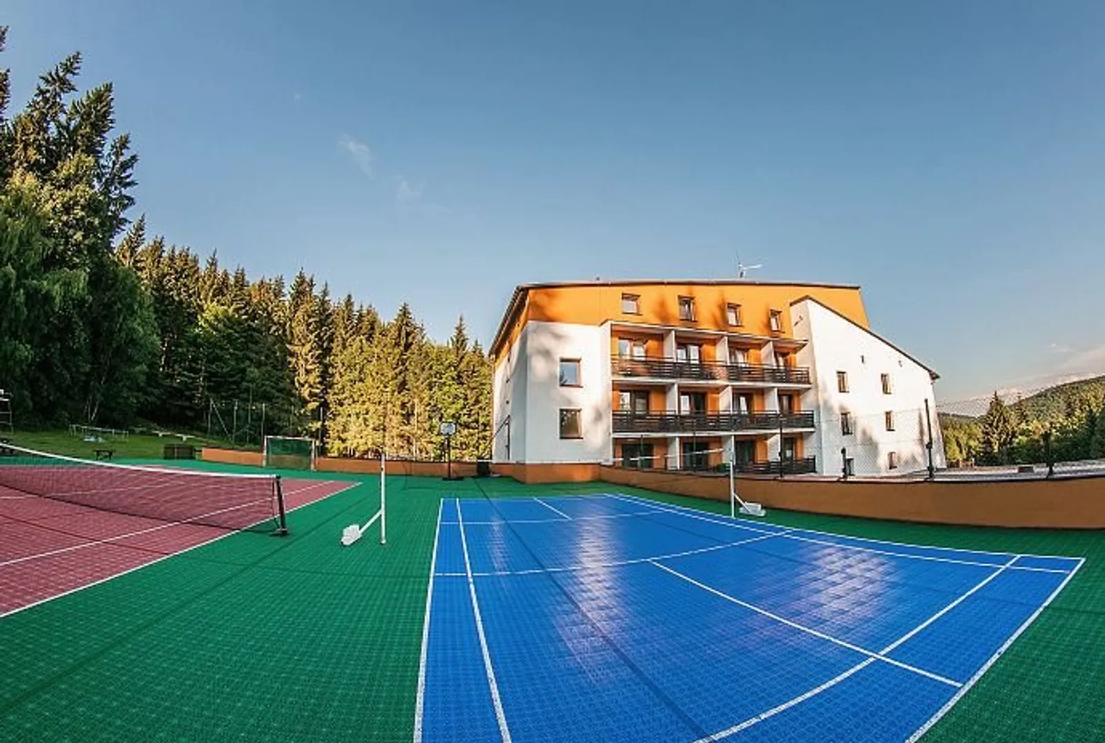 Parkovanie: Hostia môžu využiť bezplatné parkovanie priamo pri hoteli. V rámci zázemia: Hotel ponúka krytý vyhrievaný bazén, malý whirlpool, profesionálnu posilňovňu, telocvičňu, tenisové a badmintonové kCourty, vonkajšie ihrisko a bezplatné WiFi pripojenie.