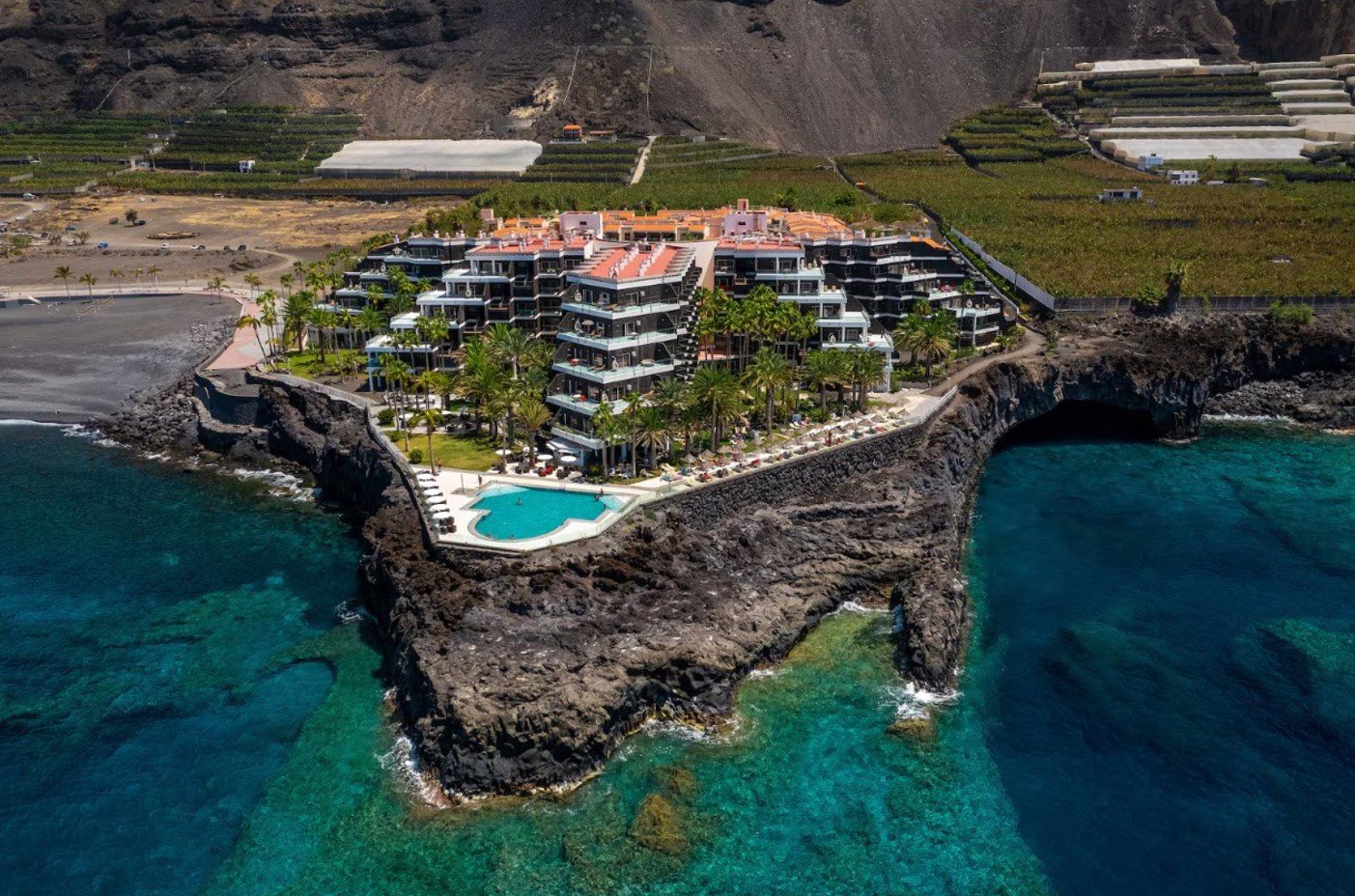 Prirodzená pláž s pieskom a kamenmi, známa ako Playa Puerto de Naos, sa nachádza len 50 metrov od hotela. Pláž je známa svojím tmavým sopečným pieskom a pozdĺž nej sa tiahne promenáda, ktorá ponúka skvelé miesto na prechádzky. Pre pohodlný vstup do oceánu sa odporúča mať so sebou topánky do vody, čo zabezpečí väčšie pohodlie pri kúpaní.