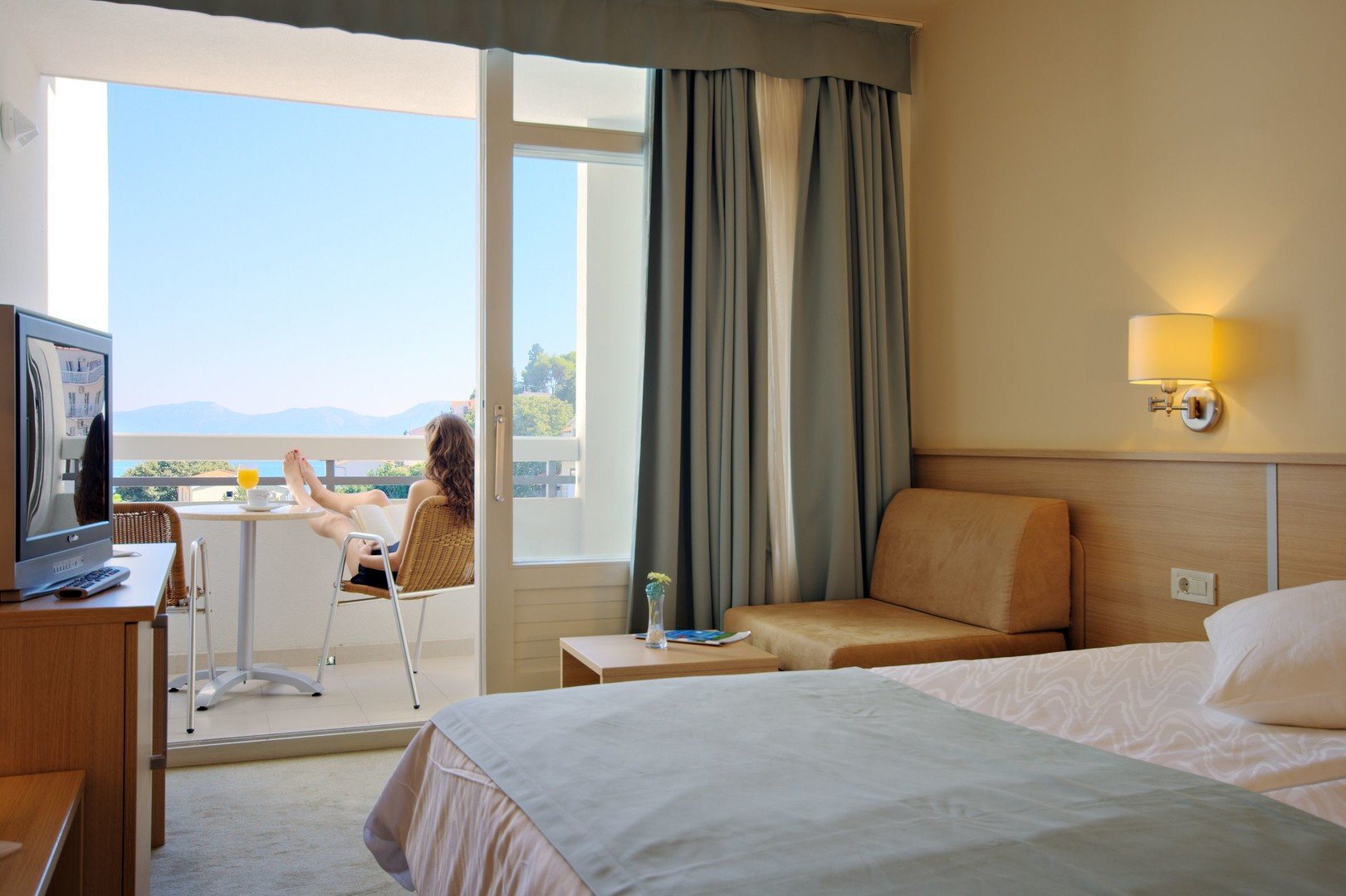 Hotel ponúka priestranné a komfortné klimatizované izby, ktoré sú zariadené s ohľadom na pohodlie hostí. Izby s výhľadom na okolie (typy 2+0 a 2+1) sú vybavené sprchou/WC, TV/sat a minibarom za poplatok. Izby s výhľadom na more (typy 2+0, 2+1 a 2+2) majú navyše balkón. Každá izba je štandardne vybavená sušičom na vlasy, trezorom a telefónom. Detské postieľky sú k dispozícii na požiadanie za poplatok okolo 5 EUR/deň, a prístelky vo forme rozkladacej pohovky sú vhodné pre deti do 12 rokov.