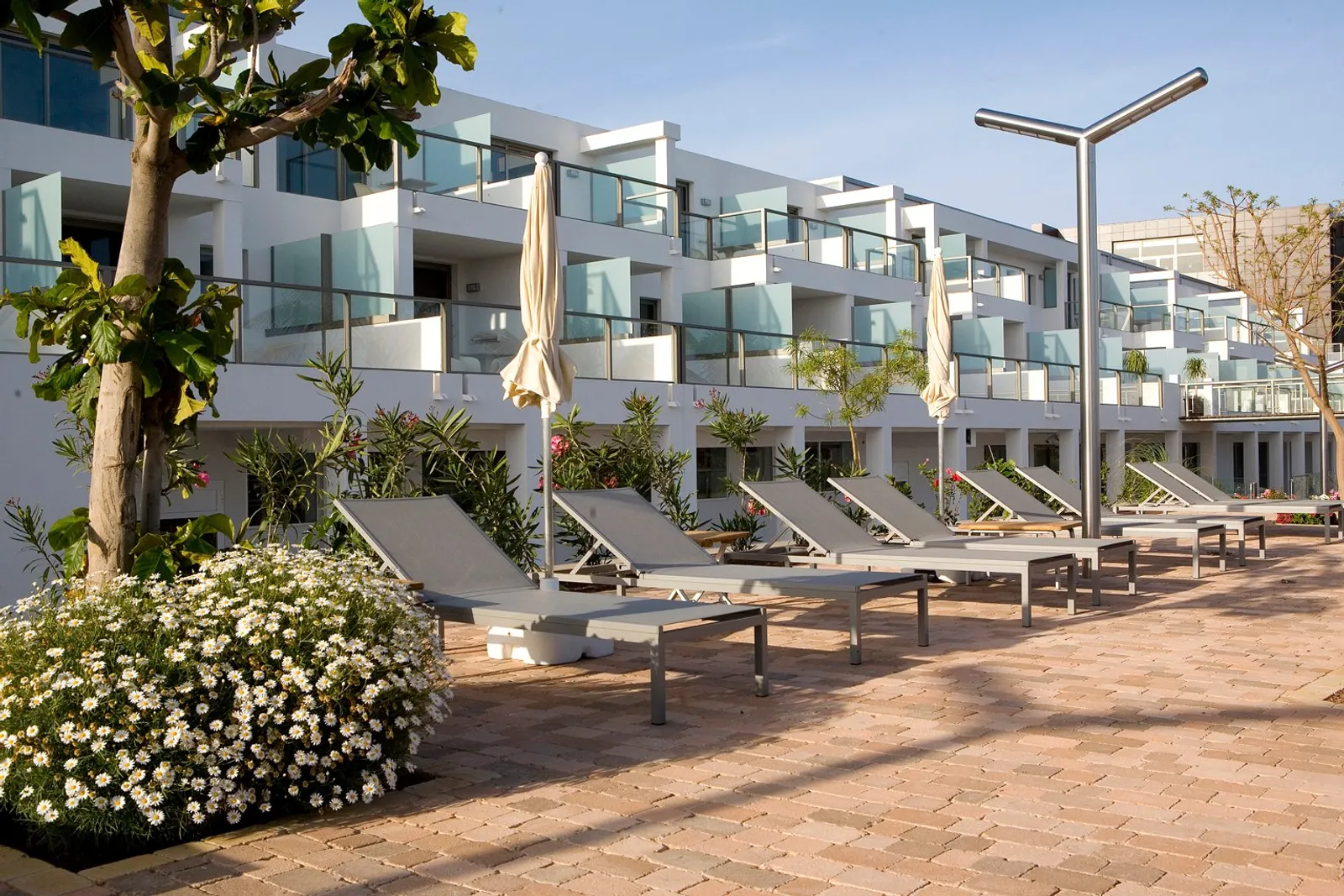 Pred hotelom sa nachádza verejná prírodná pláž s tmavým pieskom a kamienkami, avšak bez plážového servisu. Pre tých, ktorí preferujú svetlejší piesok, je tu nádherná pláž Playa de Sotavento, ktorá sa nachádza asi 15 km od hotela a je známa svojosťou Modrej vlajky. Na tejto pláži sú k dispozícii lehátka a slnečníky, avšak za poplatok, a je možné sa tam dostať aj verejnou dopravou.