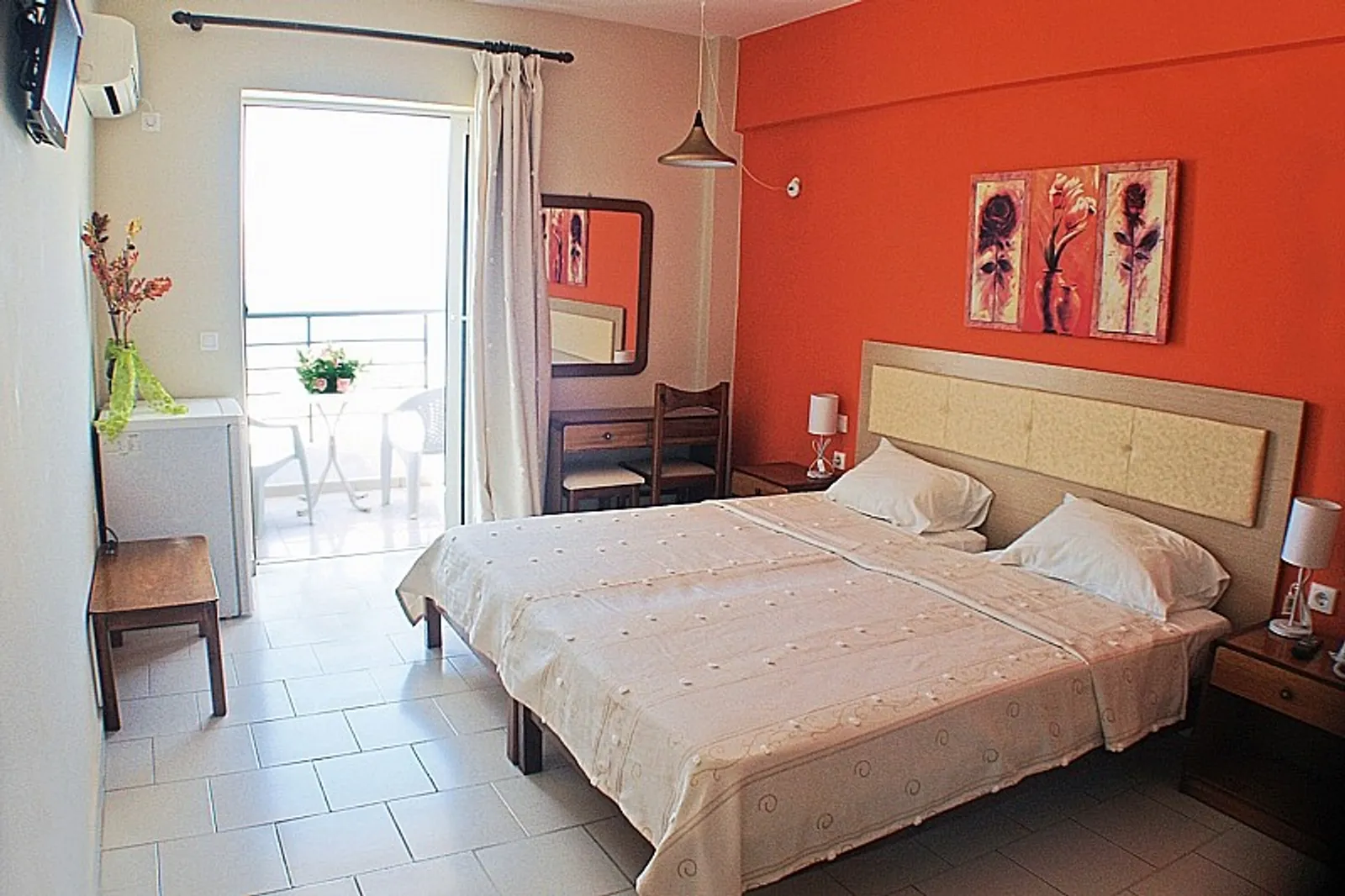 Dvojlôžkové izby sú vybavené kúpeľňou so sprchou a WC, ako aj klimatizáciou, ktorá je k dispozícii za poplatok. Hostia môžu využiť aj telefón, televíziu so satelitom a chladničku, pričom chladnička je tiež za poplatok. Každá izba disponuje balkónom alebo terasou, čo poskytuje krásny výhľad na okolie.