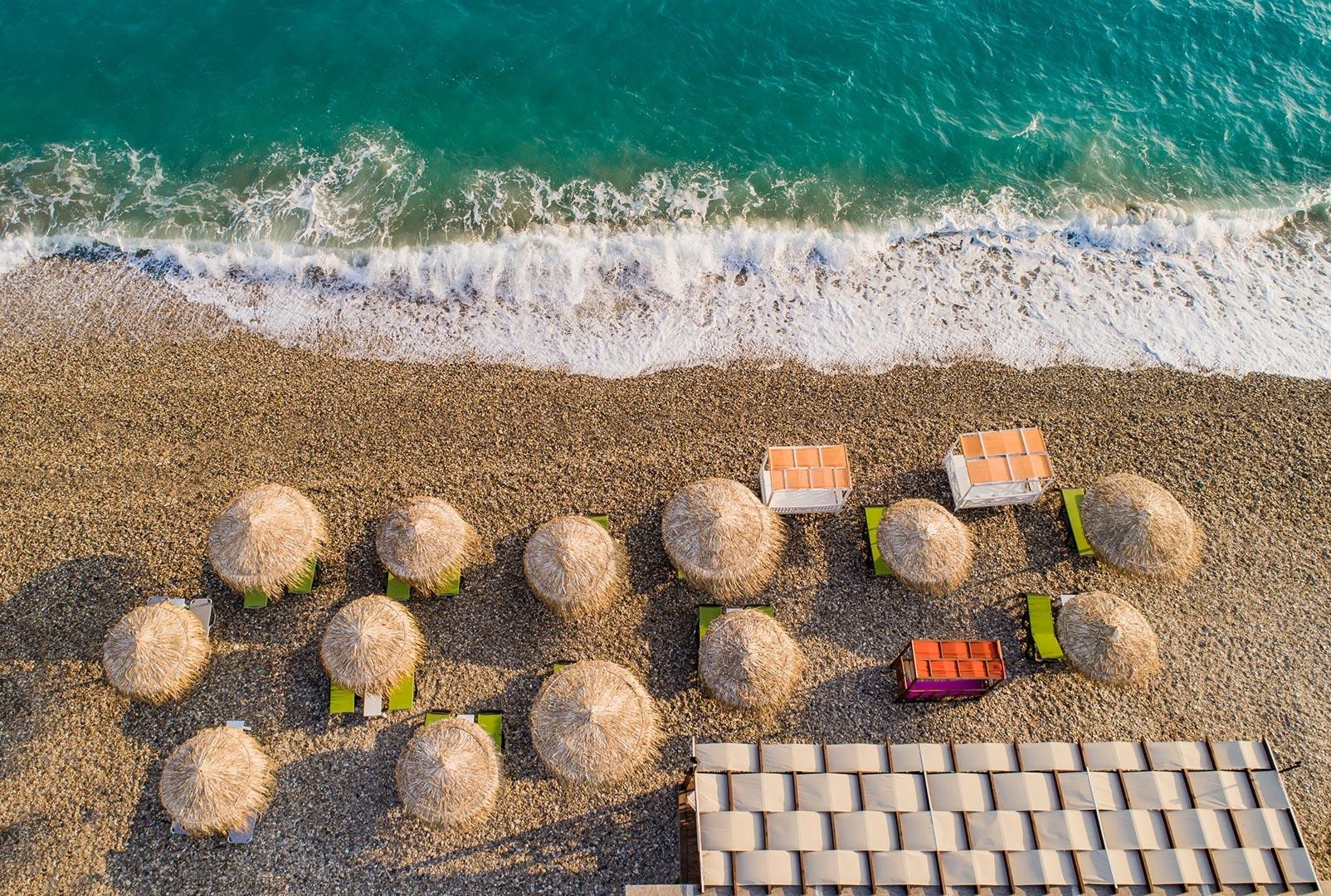Vybavení dvoulůžkového pokoje zahrnuje koupelnu s WC a vysoušečem vlasů, TV se satelitním příjmem, telefon, klimatizaci, wifi připojení, miniledničku, trezor a buď balkon, nebo terasu bez specifikace výhledu. Oblázková pláž se nachází přímo před hotelem, a pro bezpečnost hostů se doporučuje použití obuvi do vody. Bez poplatku si také mohou rezervovat lehátka a slunečníky, pokud si něco objednají v hotelovém baru nebo restauraci, kde je také k dispozici plážový bar.