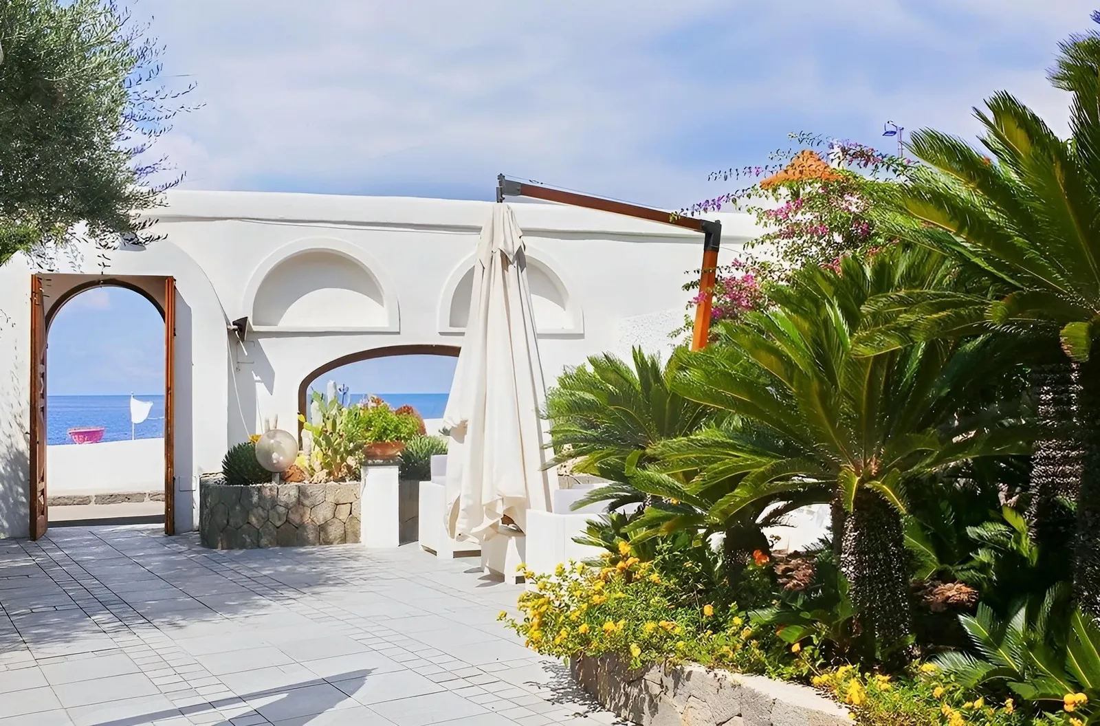 Hotel sa pyšní svojou výhodnou polohou priamo pri mori, s vlastným dreveným mólom a schodmi, ktoré vedú priamo do vody. Pre tých, ktorí preferujú piesočnaté pláže, sú obľúbené pláže ako Lido a Ciaia na dosah ruky, asi 200 metrov od hotela. Centrum Forio je vzdialené približne 700 metrov, a letisko v Neapole sa nachádza asi 50 kilometrov ďaleko.