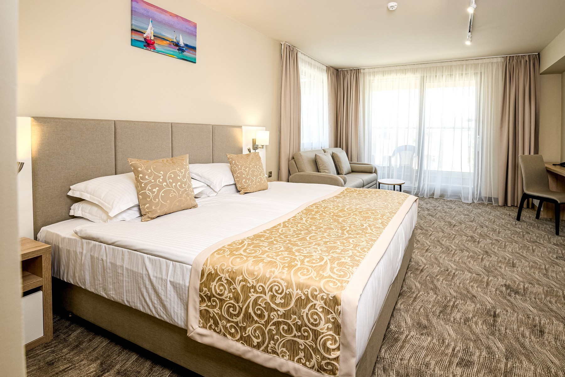 Dvojlôžkové izby sú moderné a komfortne zariadené, pričom obsahujú kúpeľňu so sprchou alebo vaňou, sušič na vlasy, centrálnu klimatizáciu, minibar (zdarma naplnený pri príchode), súpravu na prípravu čaju a kávy, telefón, trezor a televízor so satelitnými kanálmi. Každá izba má tiež balkón, kde si hostia môžu vychutnať panoramatický výhľad.
