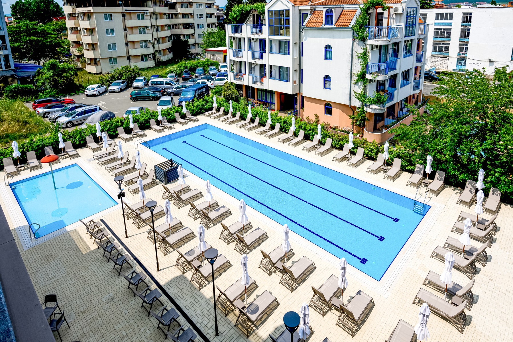 Hotel Laguna Park Sunrise sa nachádza v obľúbenom letovisku Slnečné pobrežie, len 500 metrov od jeho centra, kde návštevníci nájdu množstvo reštaurácií, obchodíkov a rôznych možností zábavy. Letisko Burgas je vzdialené 27 kilometrov, čo z neho robí ľahko dostupnú destináciu pre turistov.