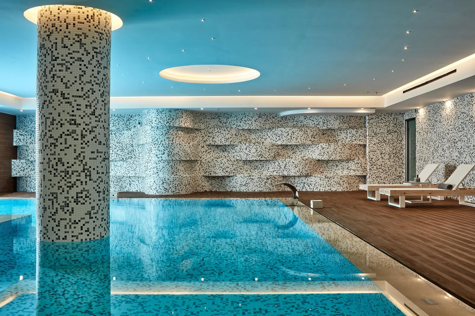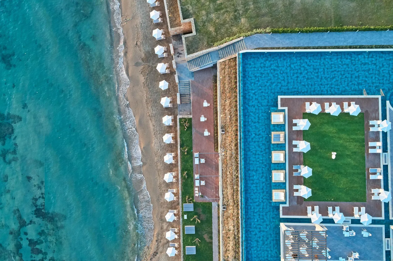 Hostia si môžu vychutnávať moderné izby, suity a vilky, z ktorých väčšina ponúka súkromné bazény a vírivky s nádherným výhľadom na Iónske more. Navyše, hotel disponuje nekonečným bazénom a wellness centrom, kde môžete relaxovať v saune alebo využiť masáže. Pri pláži sú k dispozícii pohodlné lehátka a slnečníky, ktoré sú pripravené na oddych a slnenie.