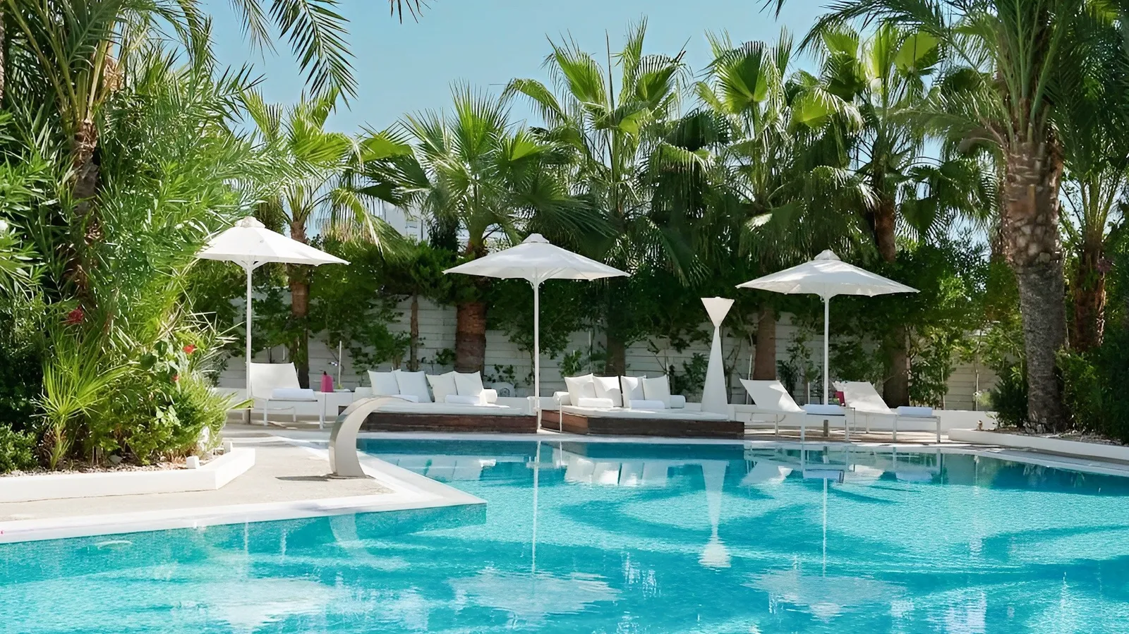 Vonkajšie priestory zahŕňajú hlavný bazén, bazén s jacuzzi a detský bazén s malou tobogánovou atrakciou. K dispozícii je aj terasa na opaľovanie s lehátkami a slnečníkmi, pričom pri bazéne sú osušky bez poplatku, zatiaľ čo pri pláži sú lehátka a slnečníky za poplatok. Na bazénovom bare si môžu hostia vychutnať neformálne občerstvenie a koktaily.