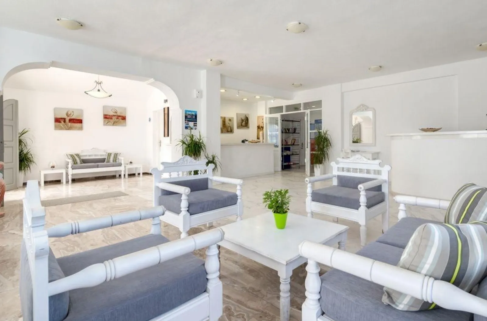 Hotel Mohitero se pyšní malou zahradou, která nabízí krásný výhled na značnou část letoviska Kamari a na moře. Jeho poloha je výhodná: vzdálenost na pláž činí pouze 480 m, letiště Santorini je vzdáleno 6 km a centrum Kamari je pouhých 0,5 km daleko. Hlavní město Théra, které je daleko 8 km, je snadno dostupné a nabízí další možnosti zábavy a kultury.
