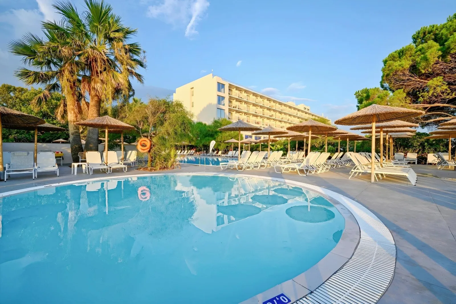 Hotel sa pýši dlhou piesočnato-oblázkovou plážou priamo pri hoteli, kde sú lehátka a slnečníky k dispozícii zdarma. Odporúča sa nosiť obuv do vody. Na pláži je bar, ktorý však nie je zahrnutý v all inclusive službách. All inclusive ponuka zahŕňa raňajky, obedy a večere formou bufetu v hlavnej reštaurácii, kde hostia môžu vychutnávať miestne nápoje, ako sú pivo, víno a nealkoholické nápoje.