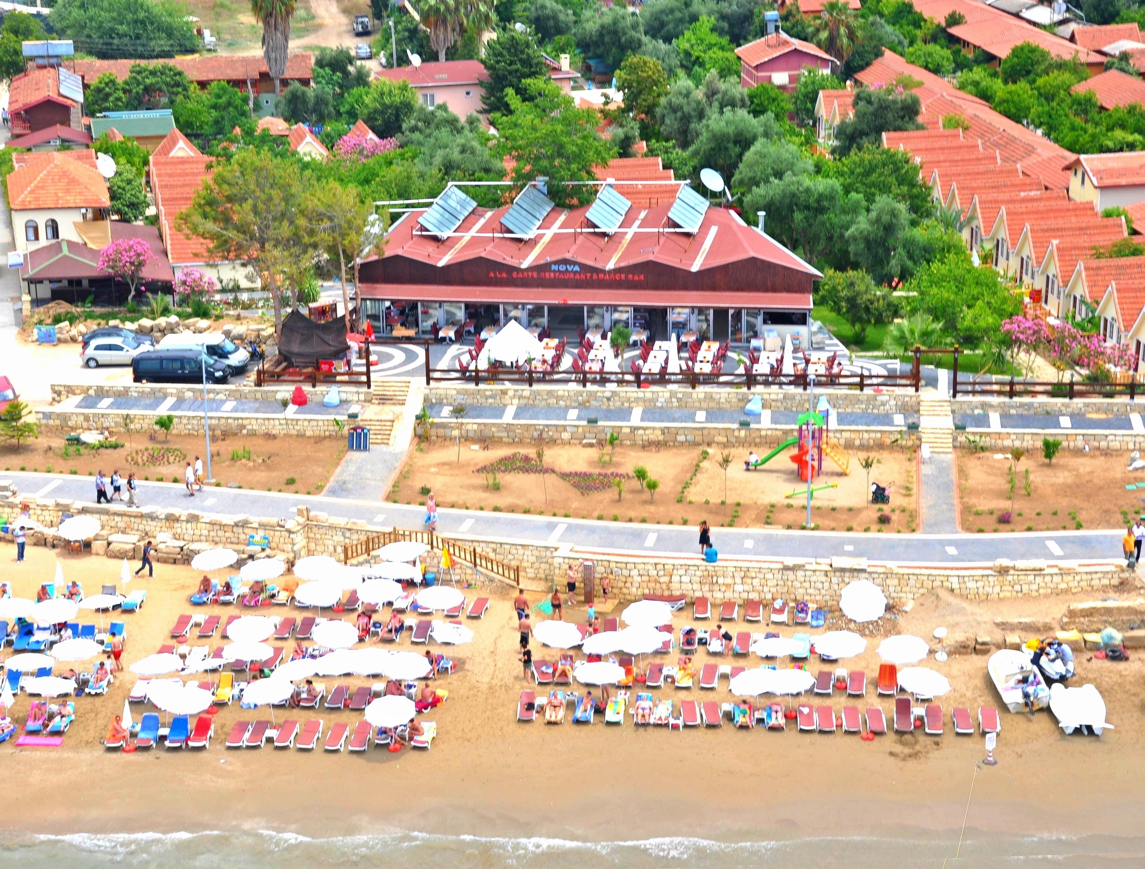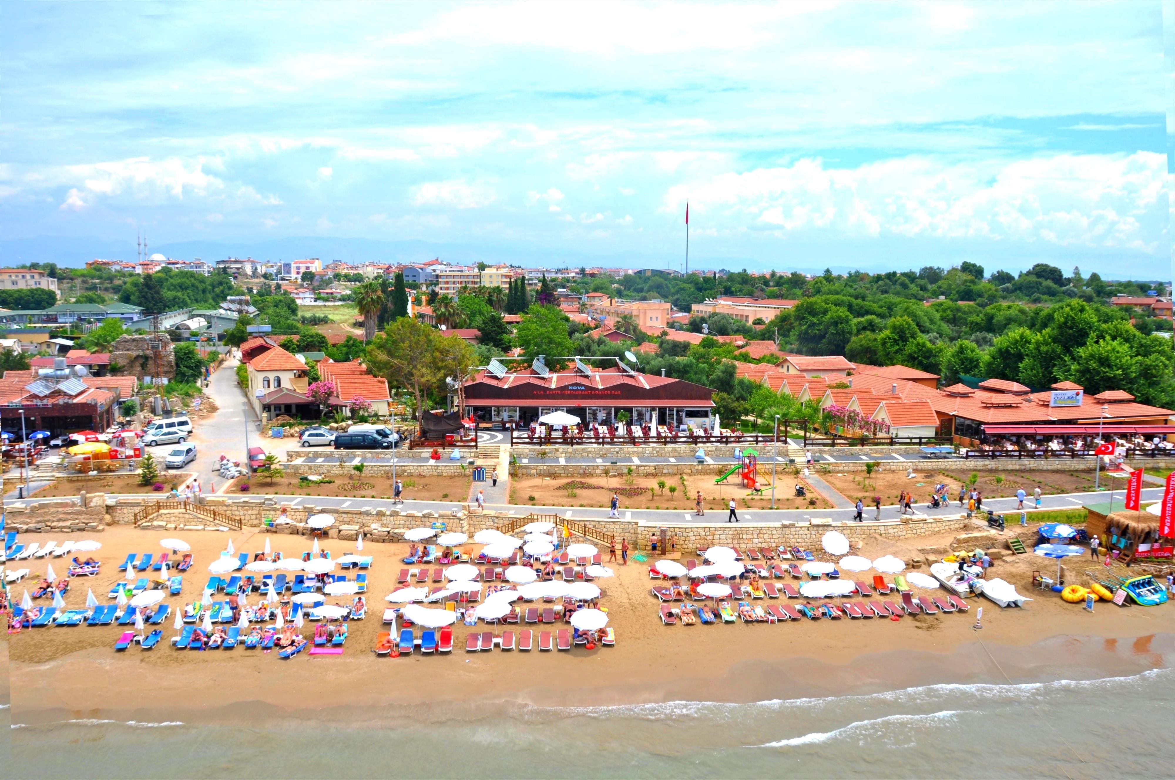 Rozľahlý komplex bungalovov pri piesočnatej pláži. Nákupné možnosti v okolí hotela. Historické centrum letoviska Side cca 500 m. Letisko v Antalyi cca 64 km.