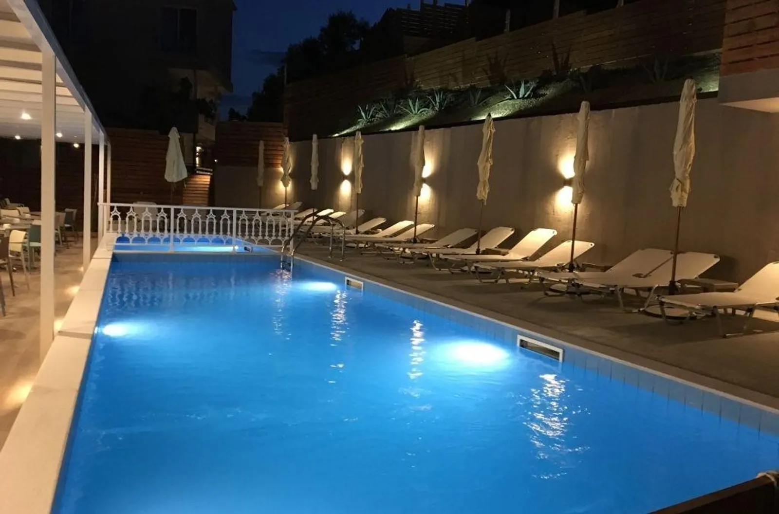 Porto Planos Beach poskytuje možnosť relaxácie pri dvoch bazénoch, pričom jeden z nich je situovaný na streche a ponúka slnečnú terasu s barom a nádherným výhľadom do okolia. Pre rodiny sú k dispozícii aj detské bazény. Lehátka a slnečníky pri bazénoch sú bez poplatku, zatiaľ čo osušky sú k dispozícii na požiadanie za vratnú zálohu (5 EUR, výmena 1 EUR). Na verejnej piesočnato-kamienkovej pláži môžu hostia využiť aj ďalšie služby za poplatok.