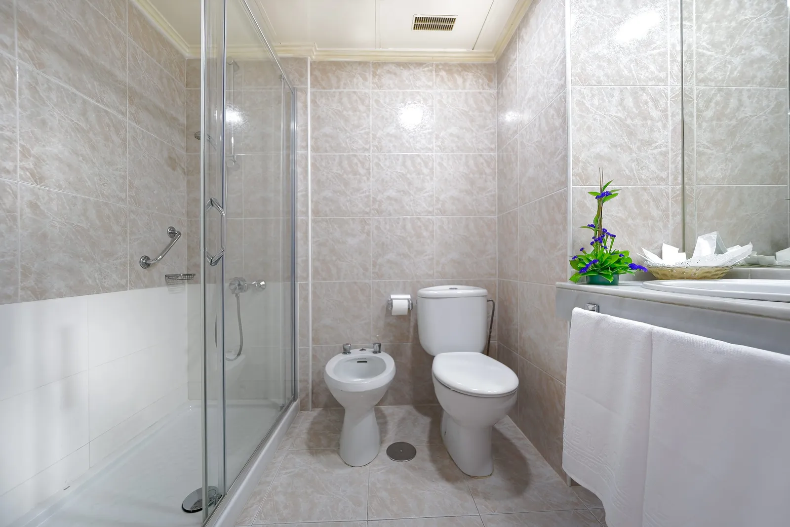 Izby sú moderne vybavené a majú vlastné kúpeľne so záchodom, TV so satelitom, telefón a balkón. Klimatizácia je dostupná v letných mesiacoch, od júna do septembra. Hostia si môžu vybrať aj izby s výhľadom na more, alebo priestranné rodinné izby. Pre návštevníkov so špeciálnymi potrebami sú na požiadanie k dispozícii dve bezbariérové izby. Areál je bezbariérový, avšak bazén nie je špeciálne prispôsobený.