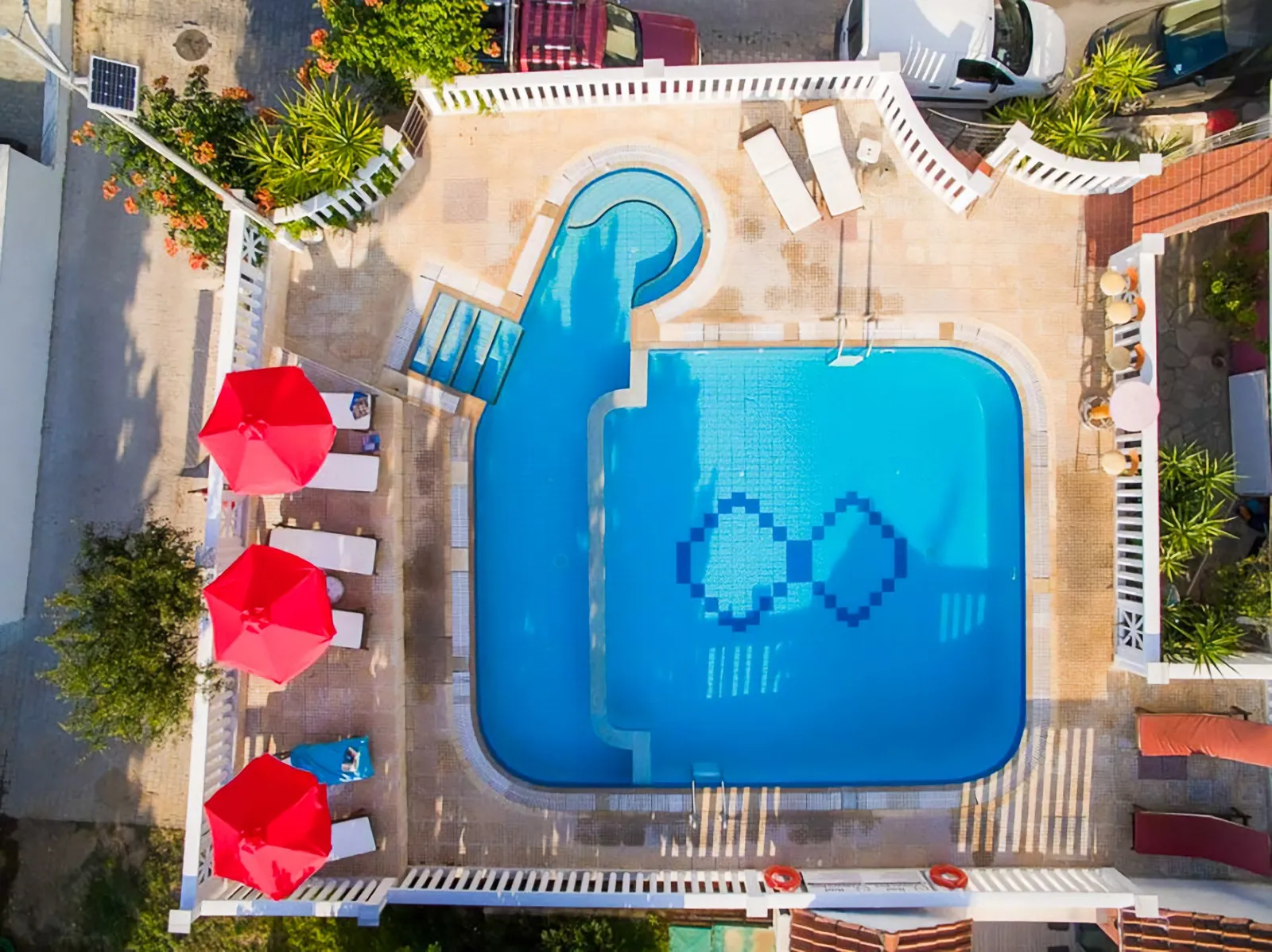 - vonkajší bazén s barom, kde sú ležadlá a slnečníky k dispozícii bez poplatku