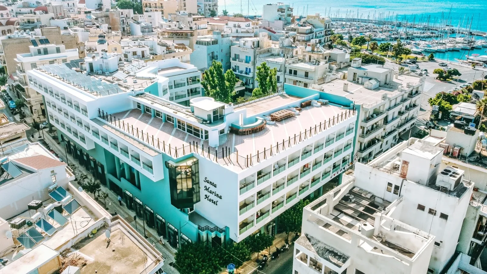 Hotel Santa Marina Unique sa nachádza v srdci očarujúceho mesta Agios Nikolaos, len 50 metrov od piesočnatej pláže. Tento moderný hotel má jednu hlavnú budovu a vnútorný dvor, kde hostia nájdu bazén a bar, ideálne pre relaxáciu. Okolie hotela je plné miestnych reštaurácií, obchodíkov, barov a kaviarní, čo umožňuje návštevníkom každý deň objavovať miestnu kultúru a kulinárske špeciality.